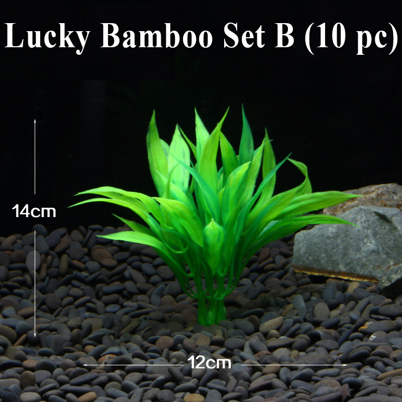 10pc Aquarium Fish Tank Decor Artificial Plants Flower Grass Lucky Bamboo Leaves