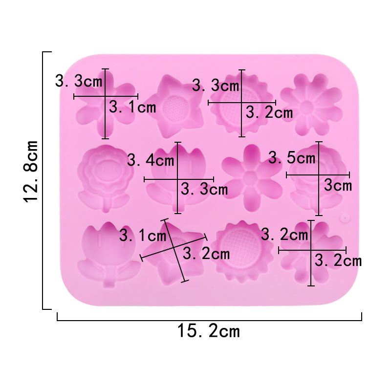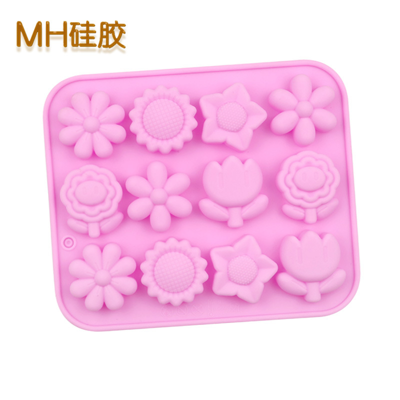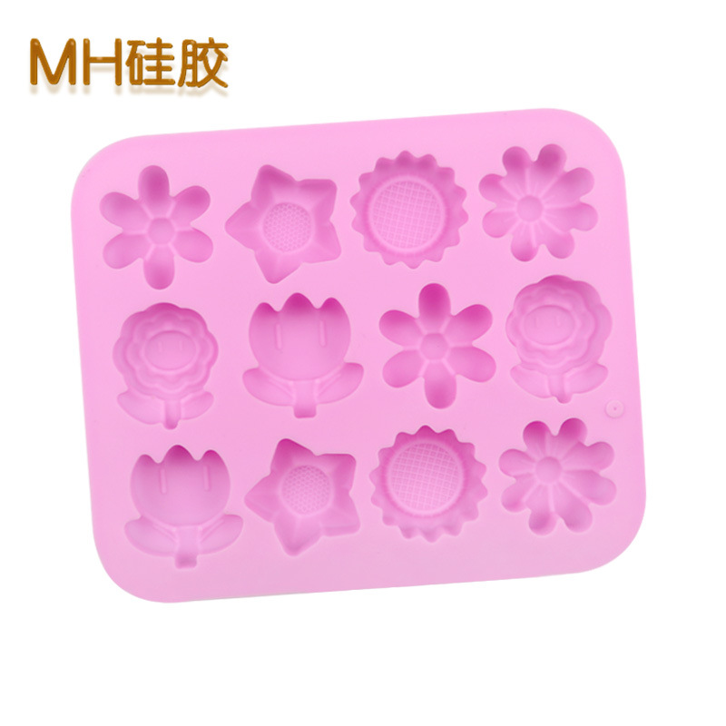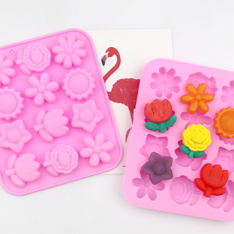 12 Garden Flowers Silicone Mould Chocolate Fondant Jelly Ice Cube Mold