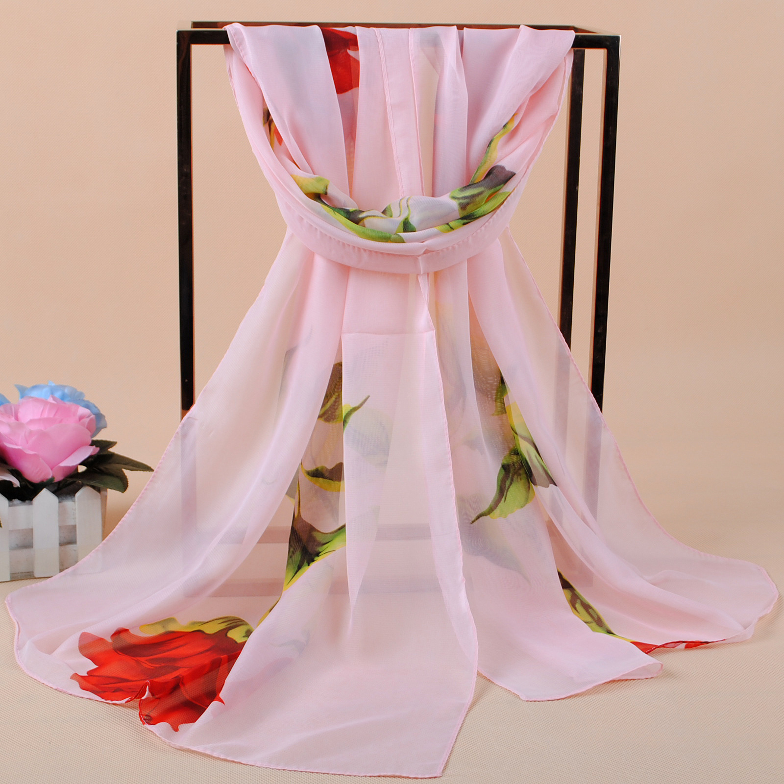 160 50cm Flowers Print Floral X294 Fashion Ladies Scarves Chiffon Scarf Womens Shawls