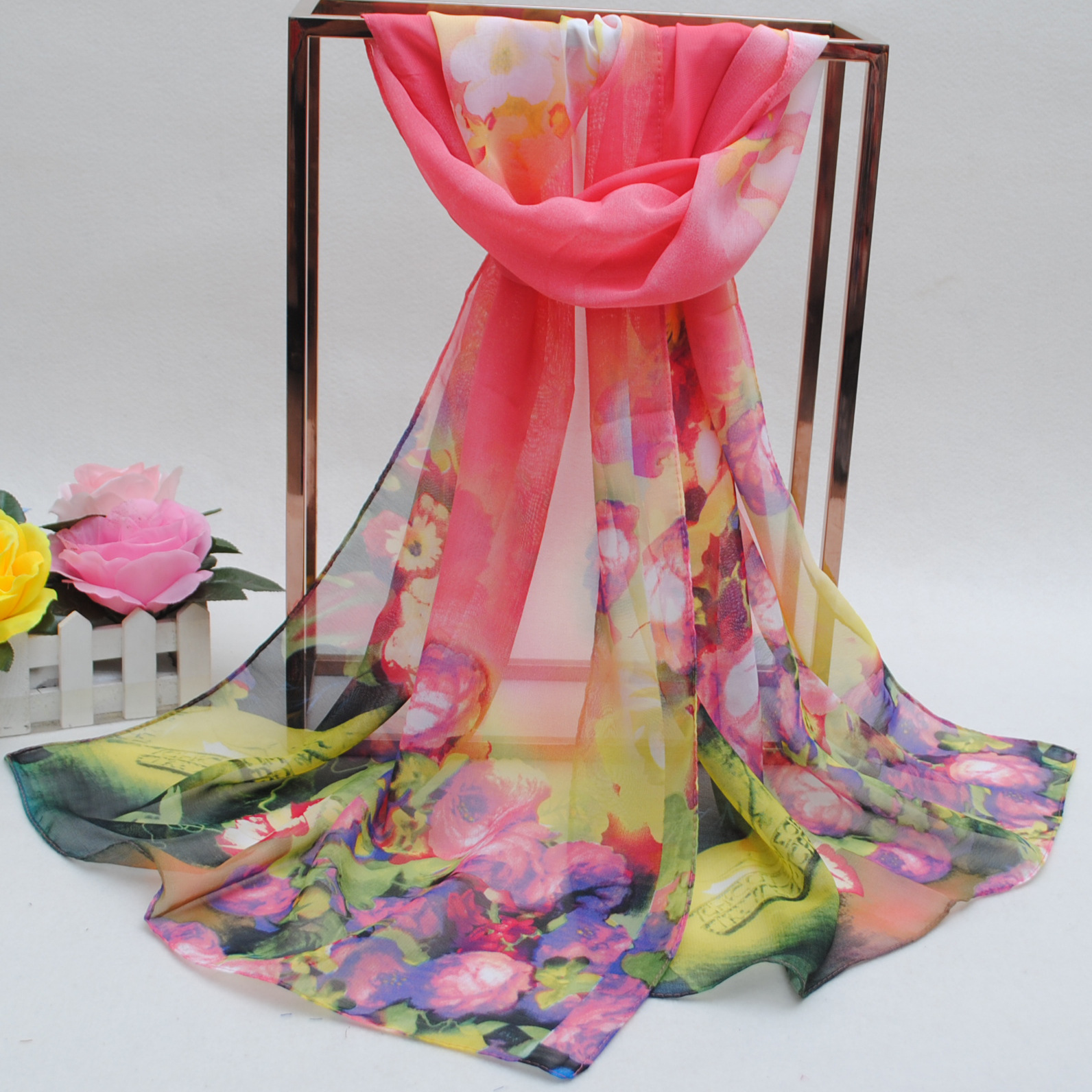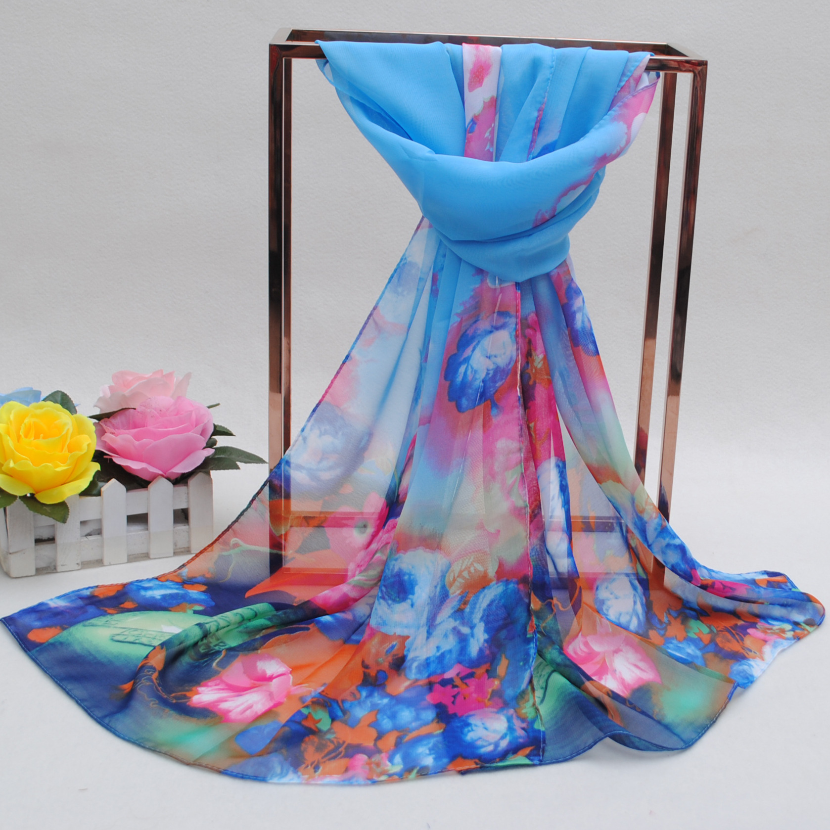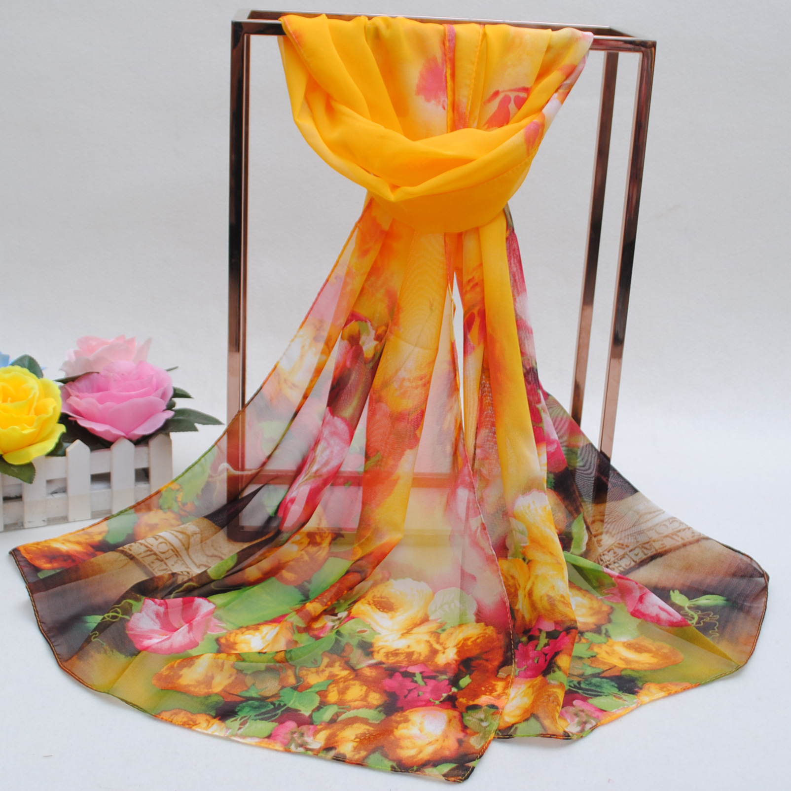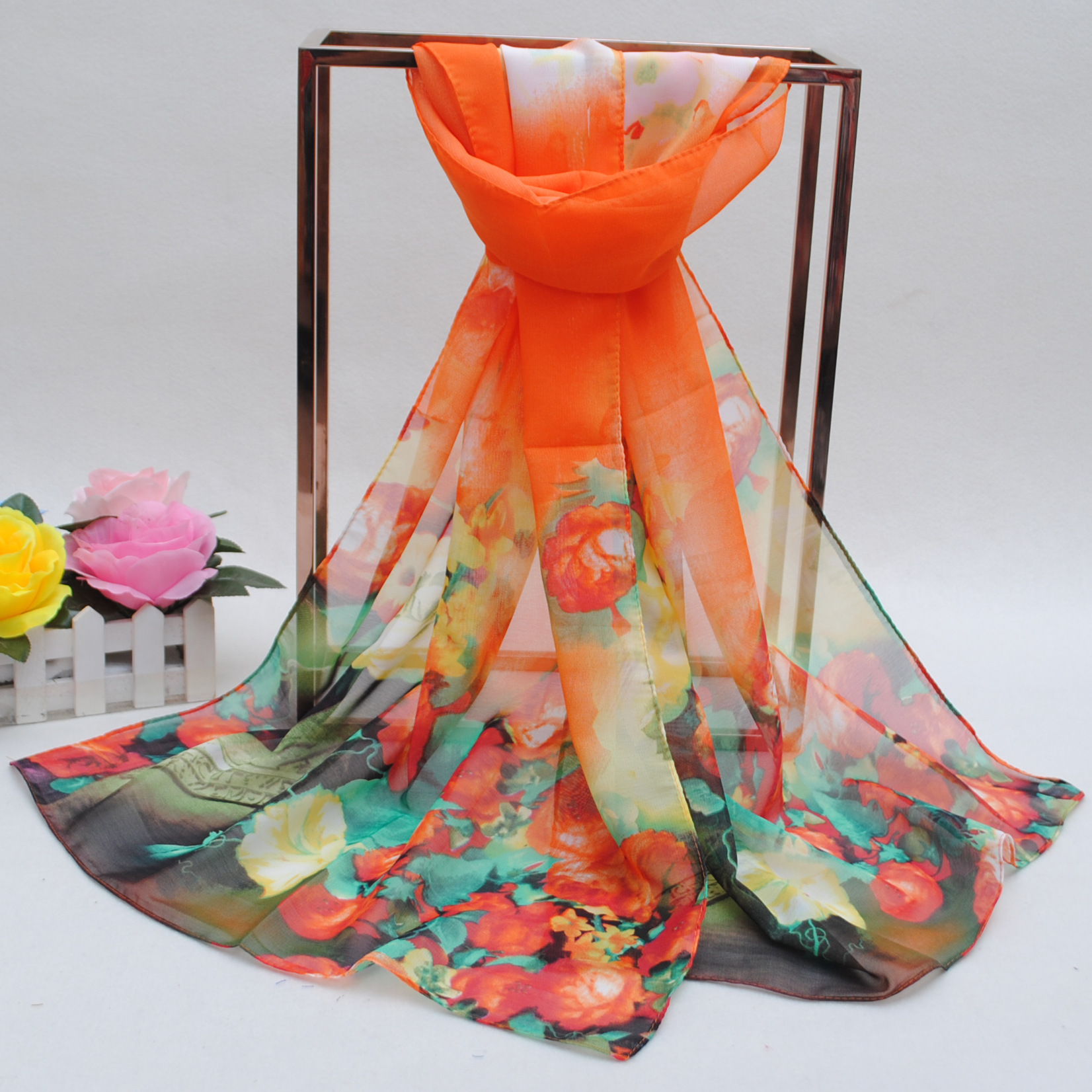 160 50cm Large Flowers Print Floral X274 Fashion Ladies Scarves Chiffon Scarf Womens Shawls