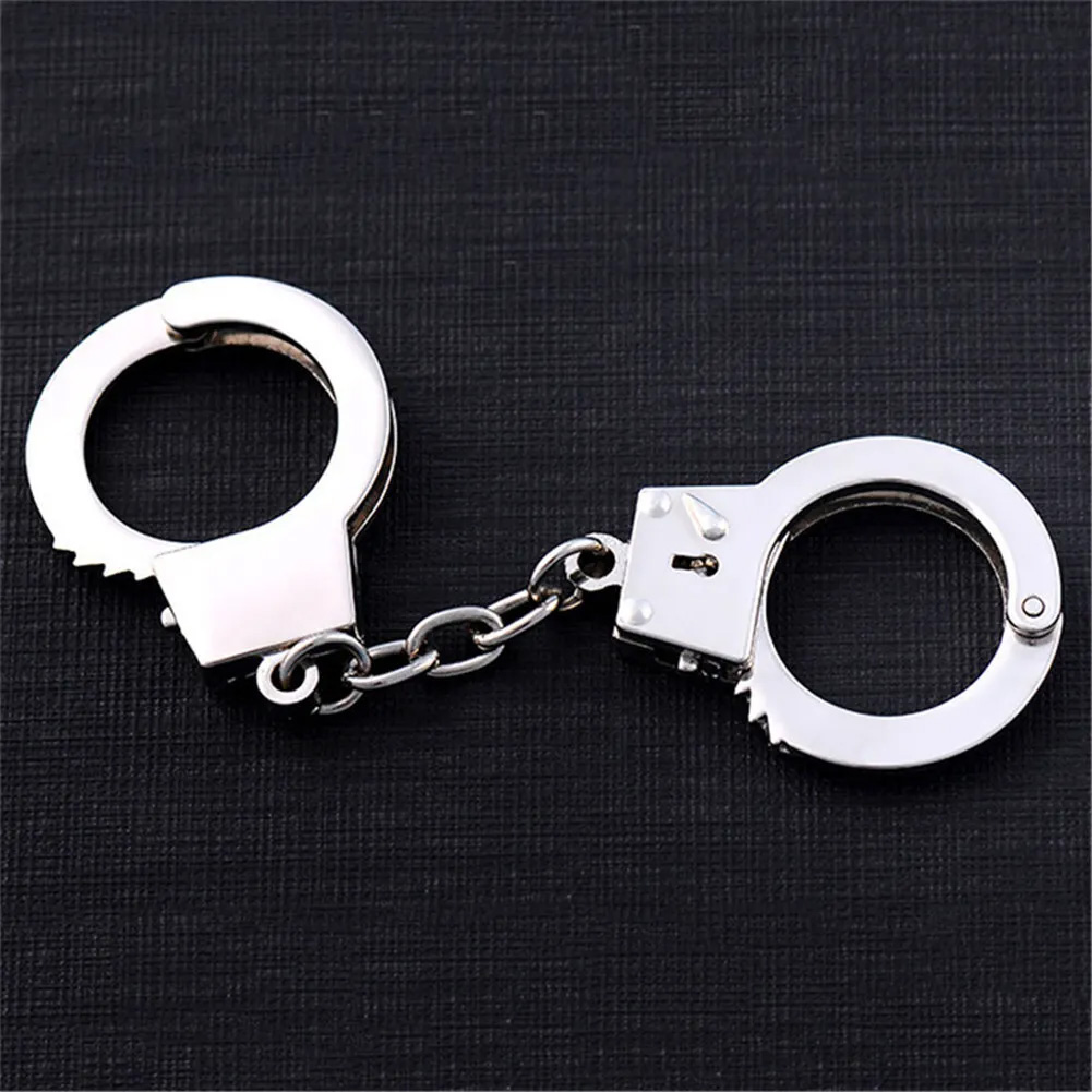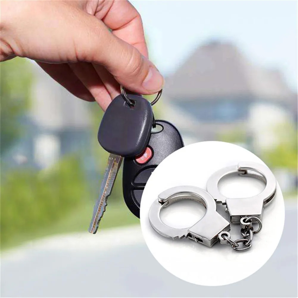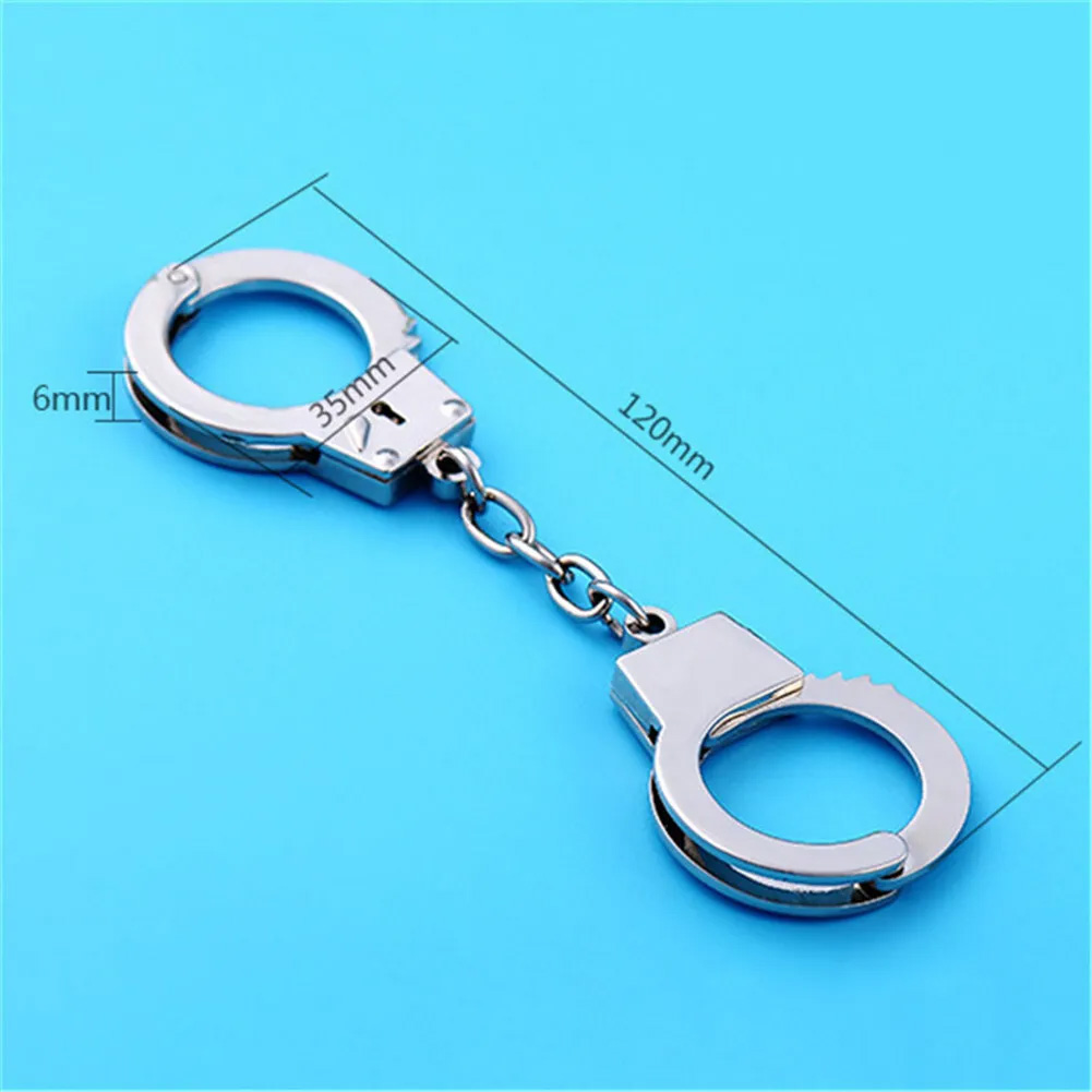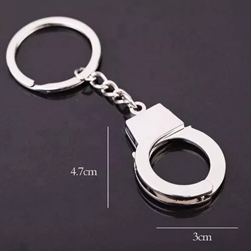 3D Silver Metal Functioning Mini Police Handcuffs Keyring Novelty Key Ring Gift