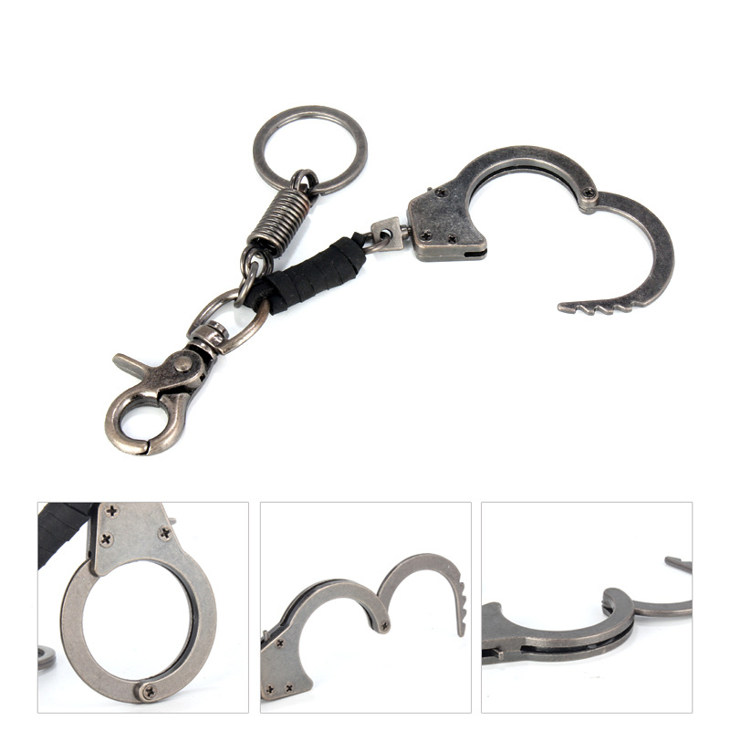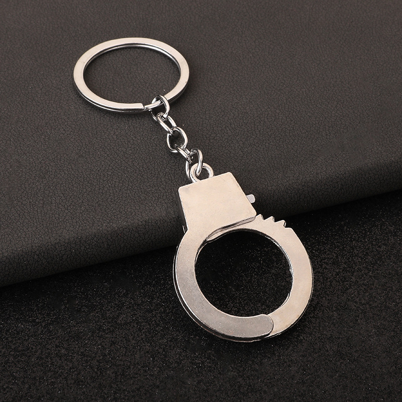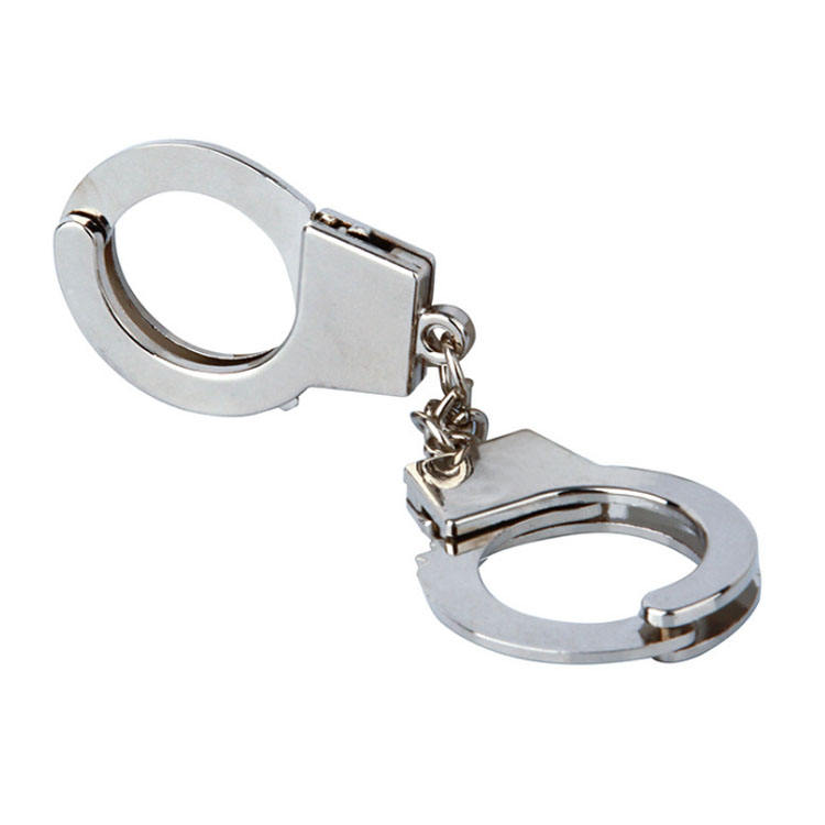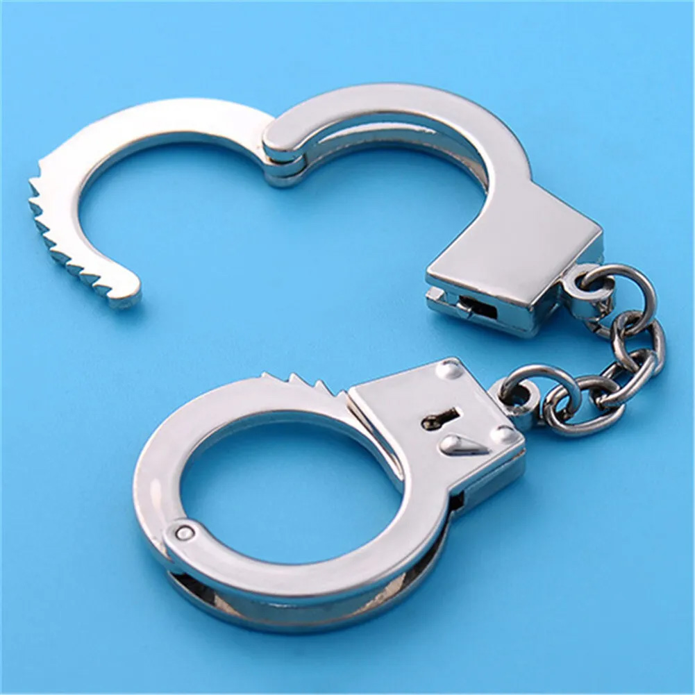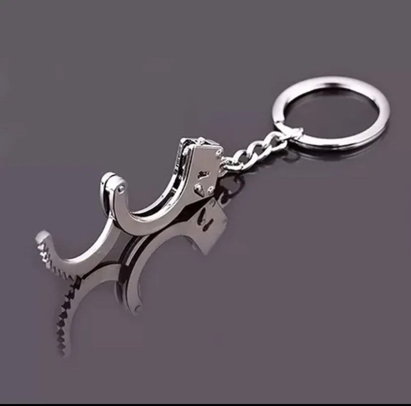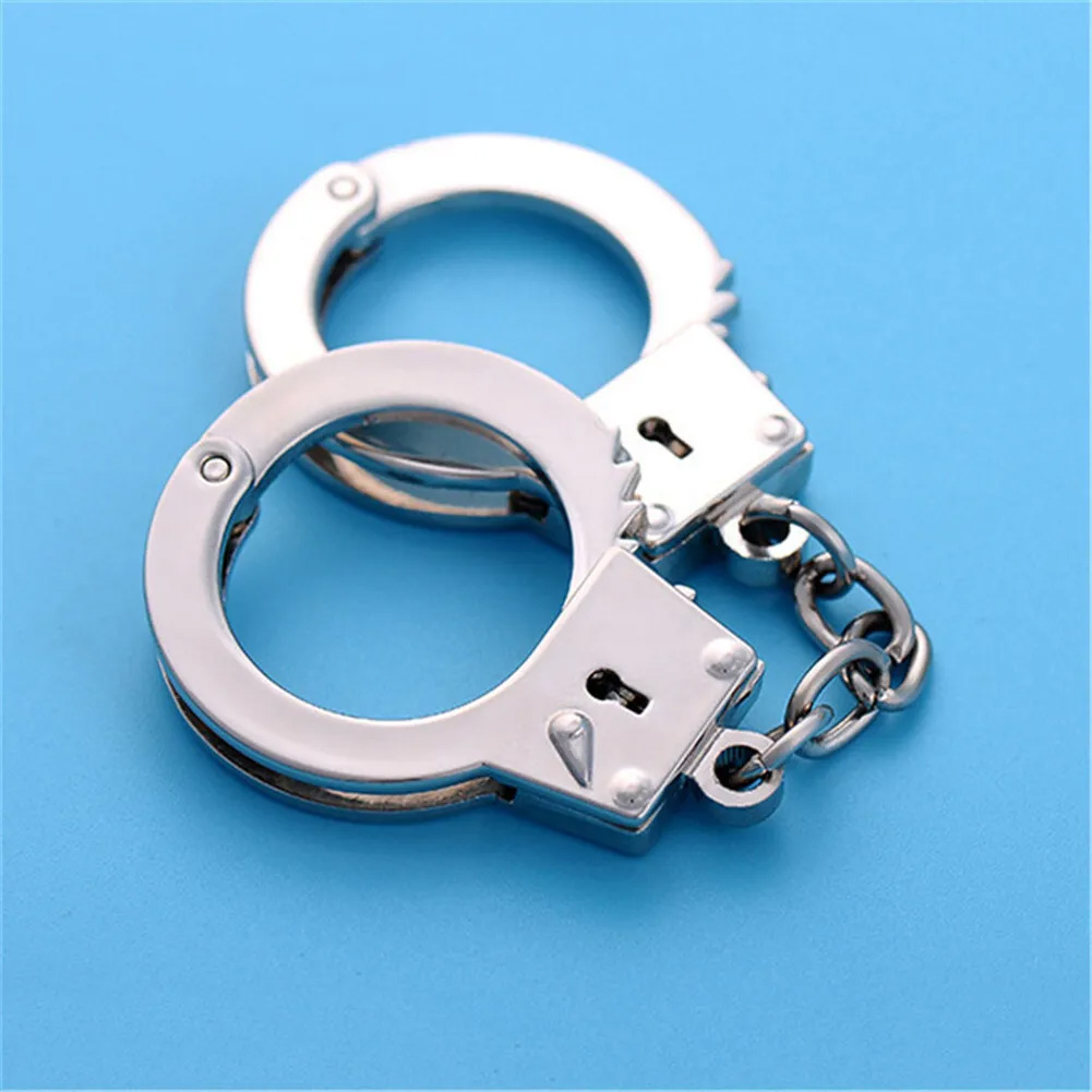 3D Silver Metal Functioning Mini Police Handcuffs Keyring Novelty Key Ring Gift