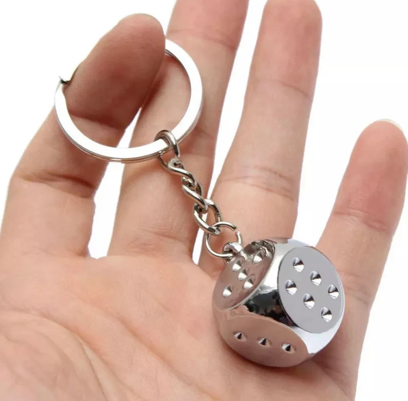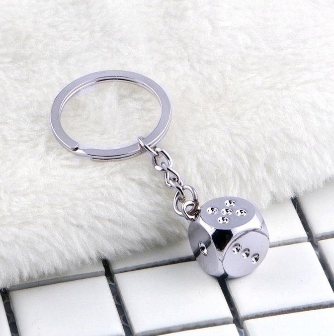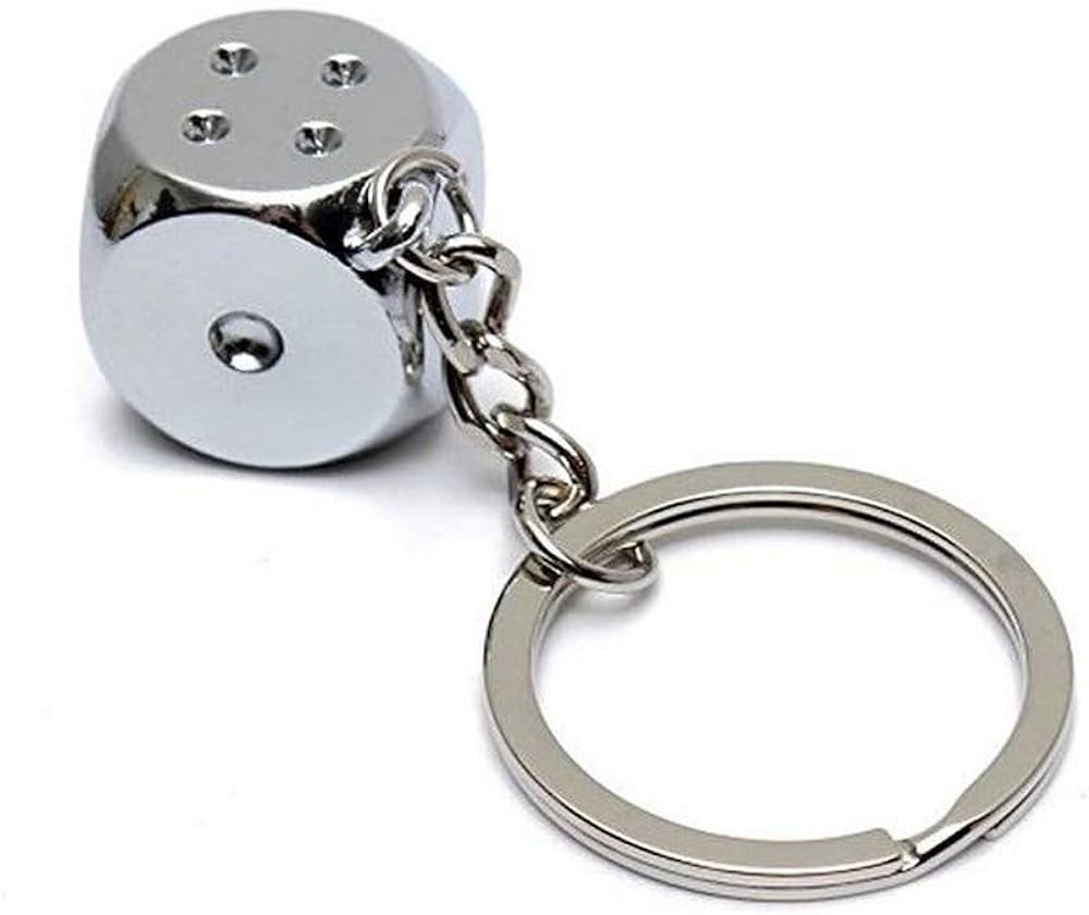 3D Silver Metal Lucky Dice Keyring Novelty Metal Key Ring Xmas Gift Casino Goer
