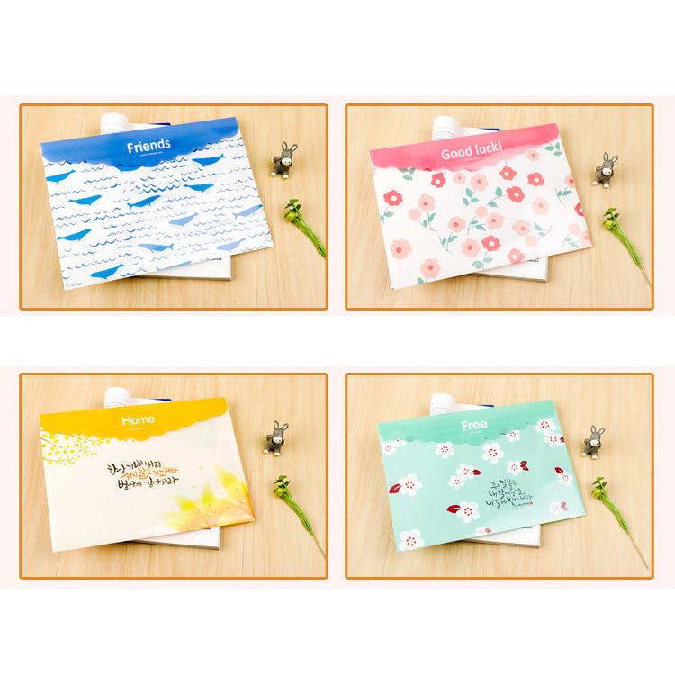 4pk Flowers Whale Patterned Fashion A4 Plastic Document Wallets File Folders