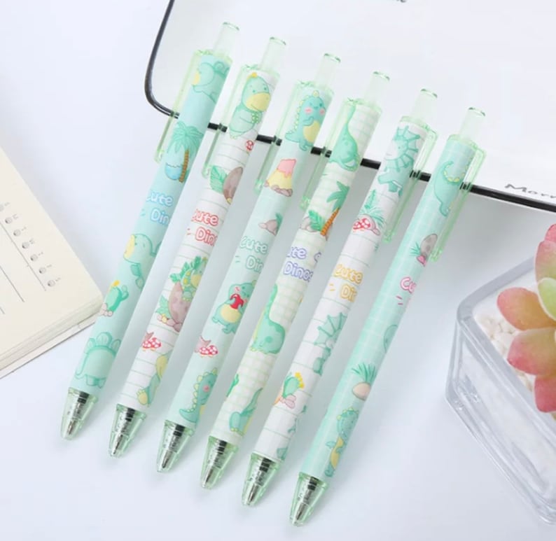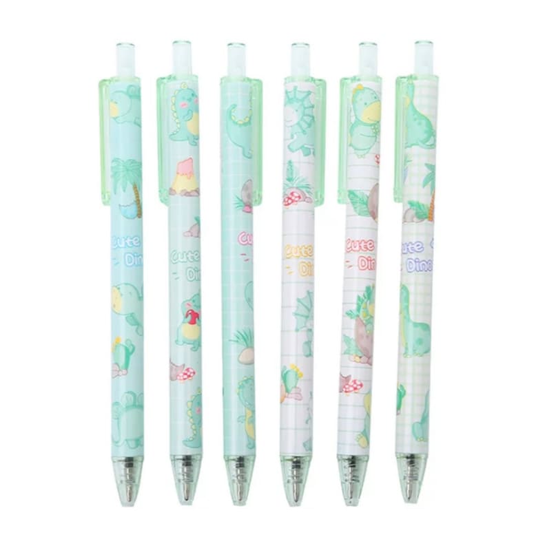6pc Dinosaurs Animals Press Ballpoint Gel Pens Cute Kids Party Gift Bag Fillers