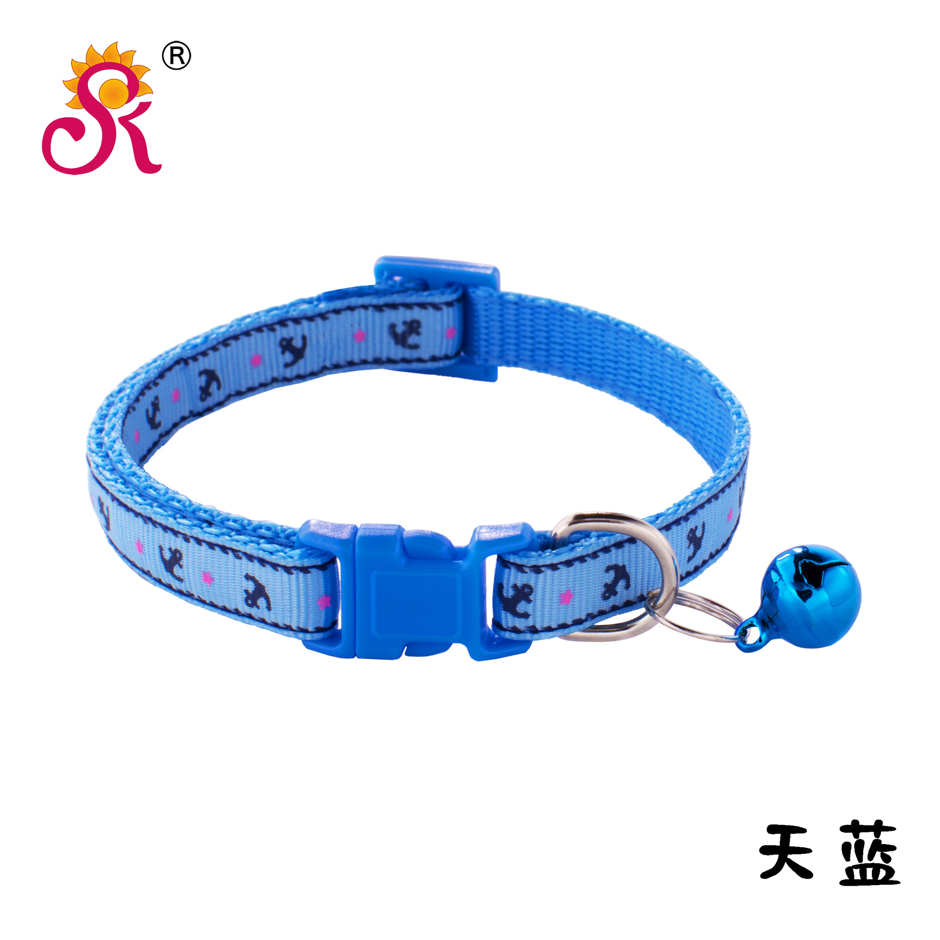 Anchor Printing Adjustable Kitten Cat Collar With Bell And Snap Buckle