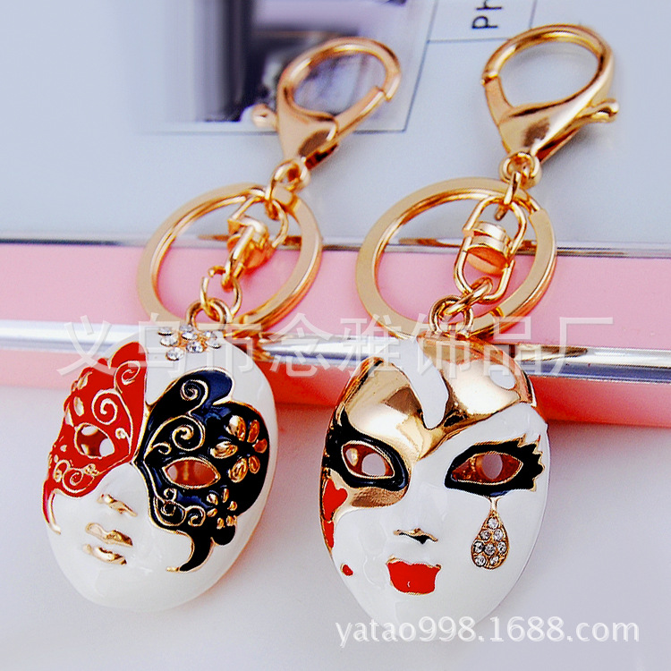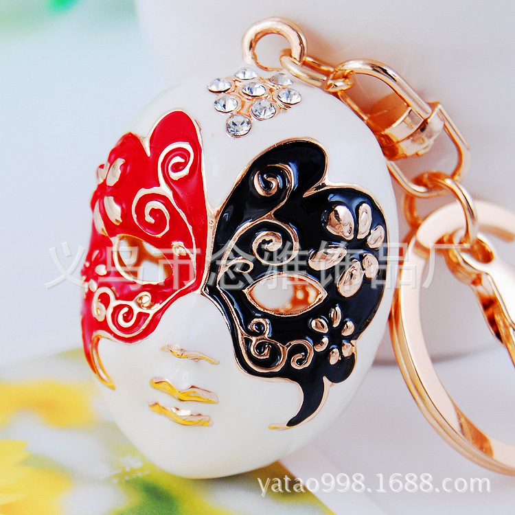 Angel Wing Opera Face Mask Crystal Diamante Bag Charms Handbag Keyrings Pendant