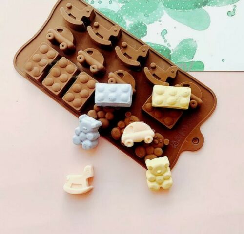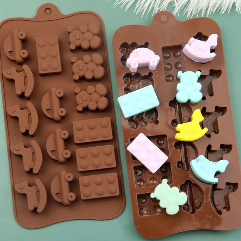 Baby Toys Cars Rocking Horse Bear Bricks Silicone Mould Chocolate Ice Cube Mold
