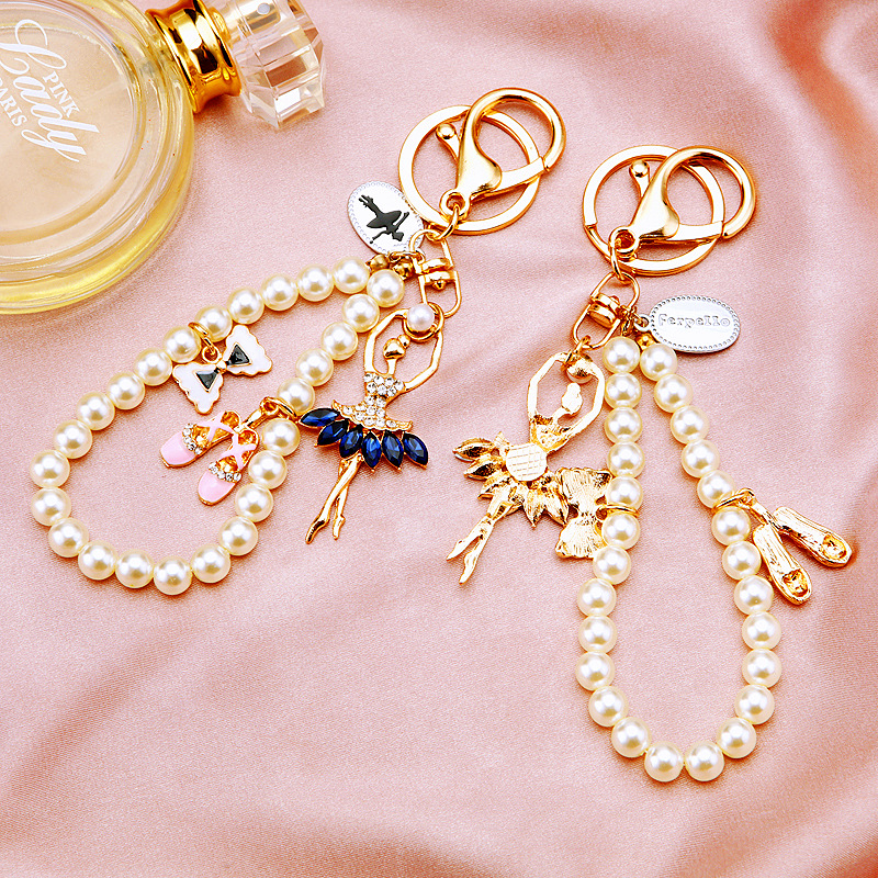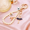 Ballerina Girl White Pearls Chain Crystal Diamante Bag Charms Handbag Keyrings
