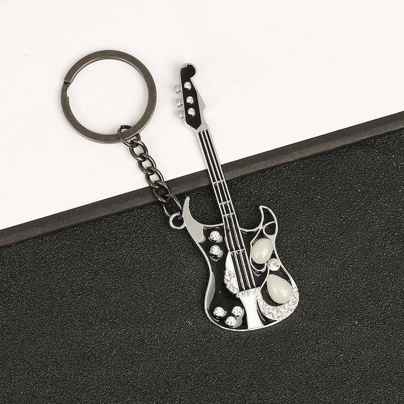 | Details: | Black Red Electric Guitar Silver Metal Keyring Key Chain Novelty Gift Present |