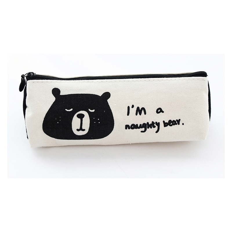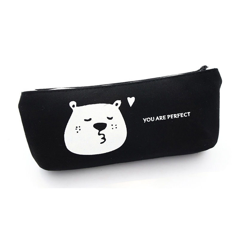Black White Bears Animals Canvas Cute Pencil Cases Make Up Bags Pen Pouches