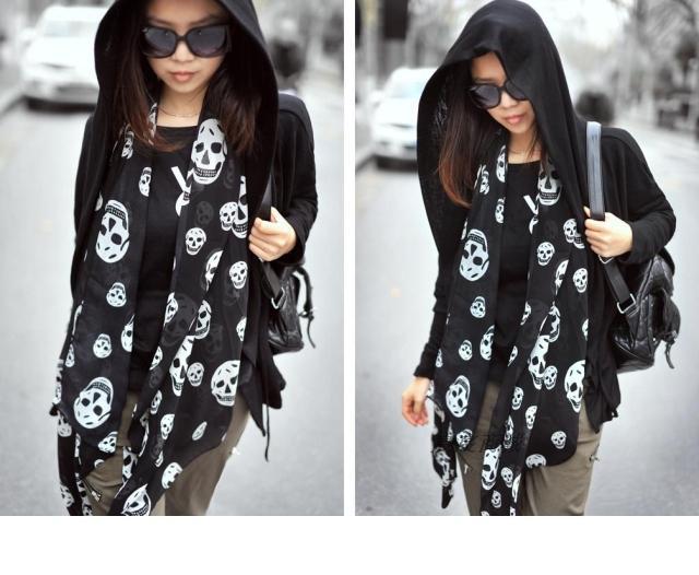Black White Skulls Fashion Ladies Scarves Chiffon Scarf Womens Shawls