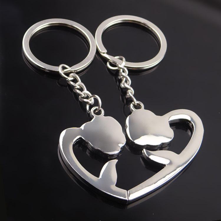 Blue Red Roses Silver Metal Couple Keyrings Set Lovers Puzzle Key Chains Gift
