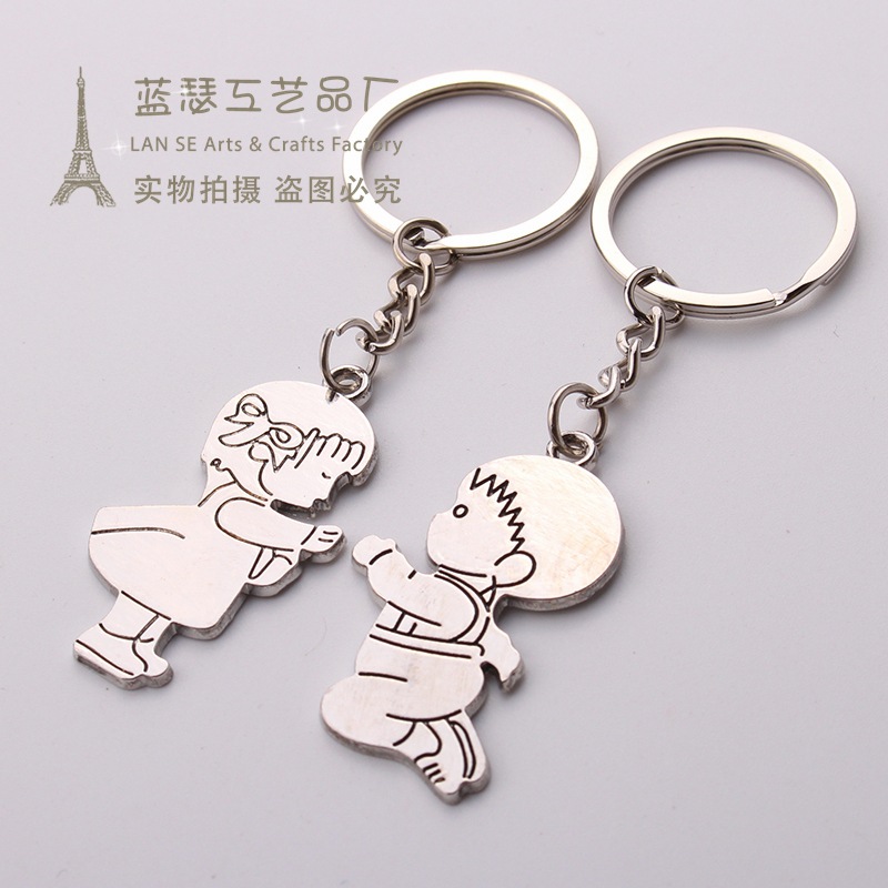 Boy Propose To Girl Silver Metal Couple Keyrings Lovers Puzzle Key Chains Set