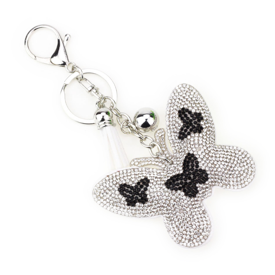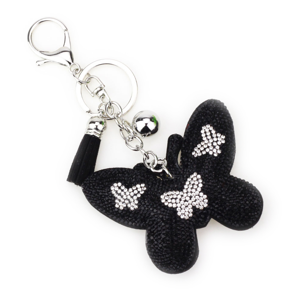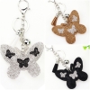 Butterfly Shape PU Leather Crystal Diamante Bag Charms Handbag Keyrings Pendant