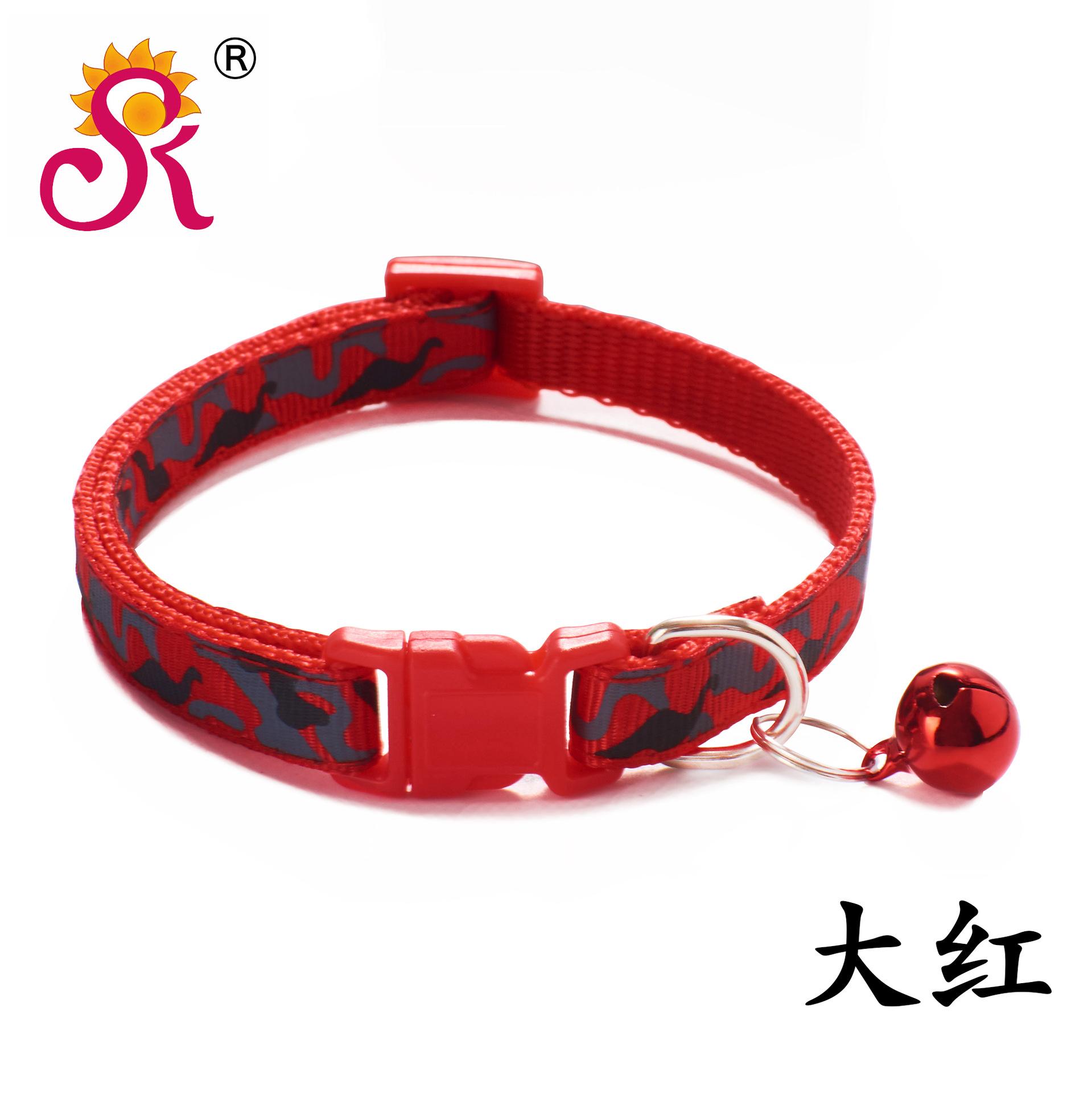 Camouflage Patterned Adjustable Kitten Cat Collar With Bell And Snap Buckle