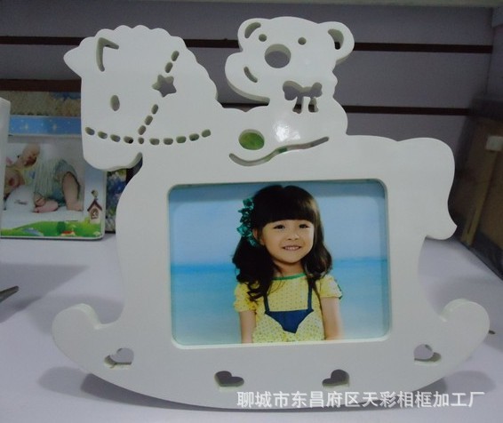 Details:Carousel With Bear 7x5 Kids White Wooden Freestanding Photo Frame For Children