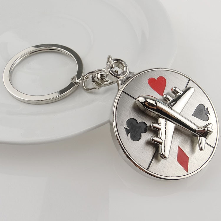 Casino Roulette Spinning Wheel Silver Metal Keyring Airplane Playing Card Pips