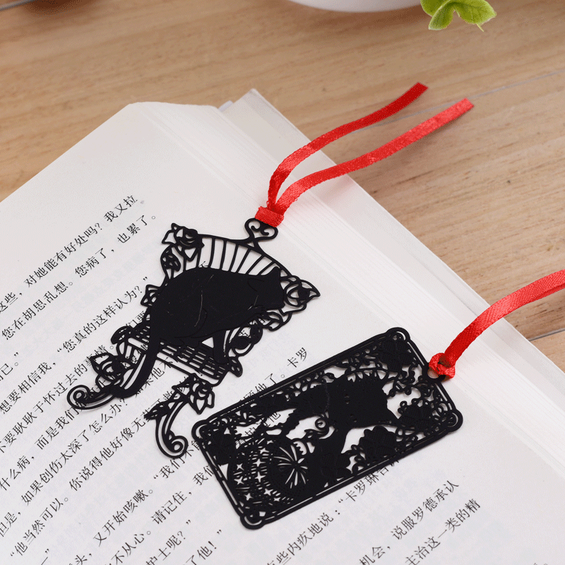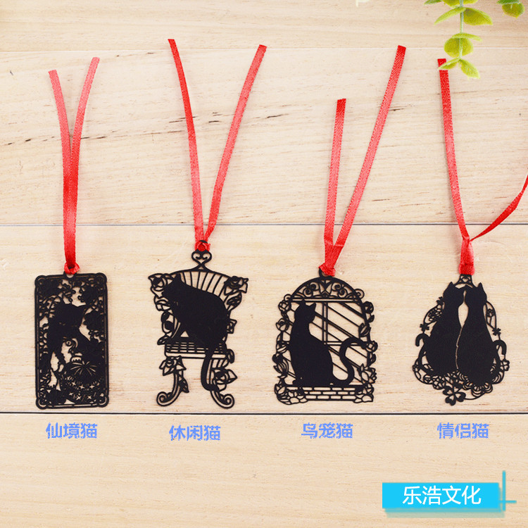 Cat Bookmark Black Metal Bookmark Red Ribbon Cat Lovers Book Readers Gift