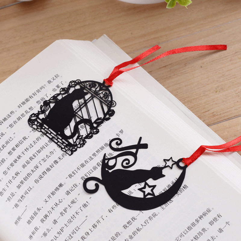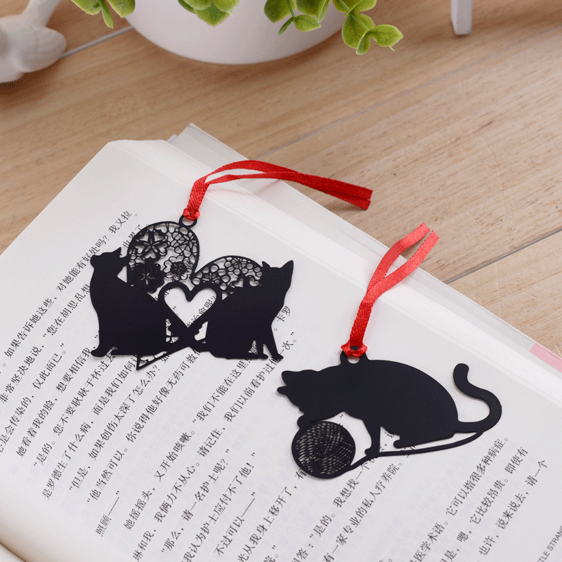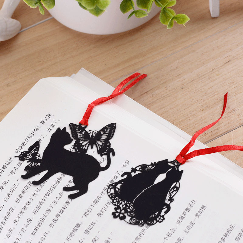 Cute black kitten cat metal bookmarks, available in different designs.