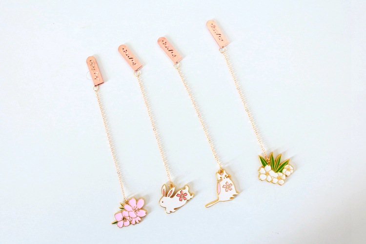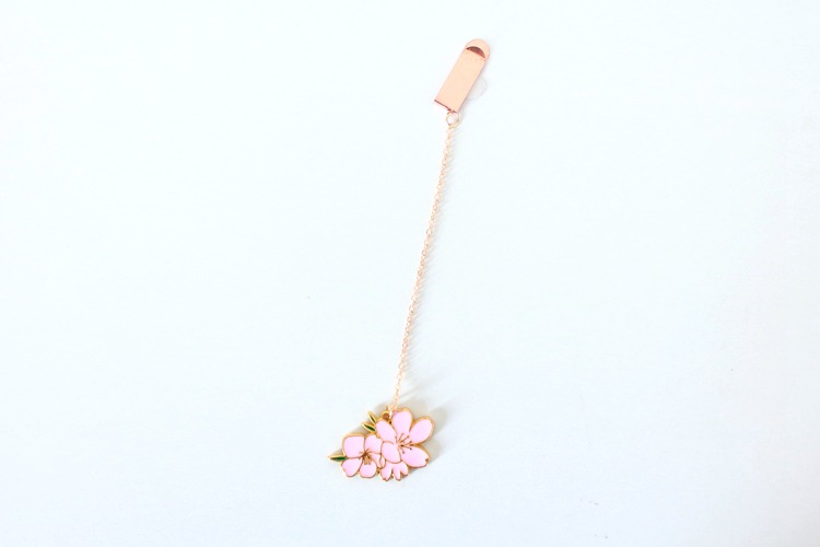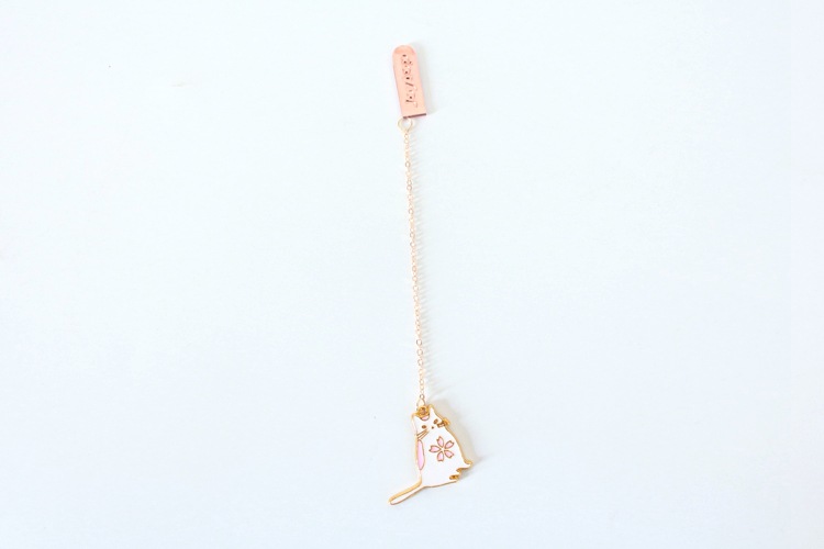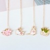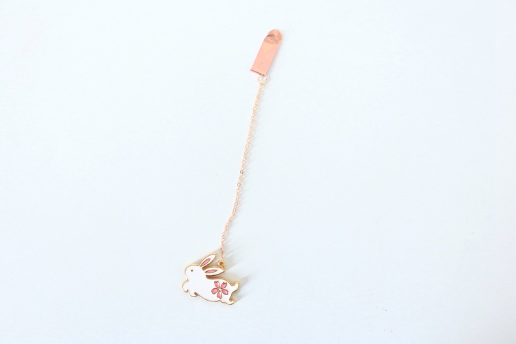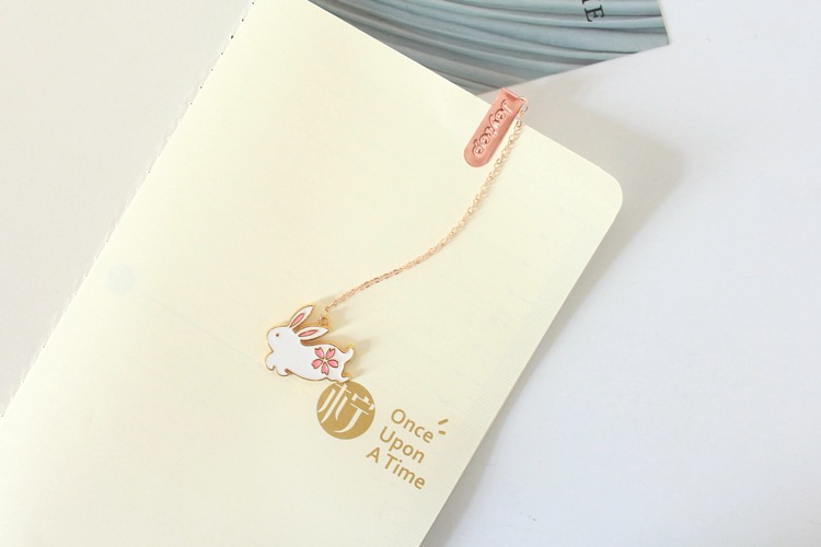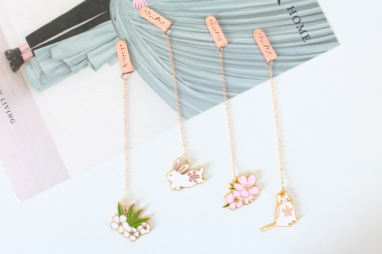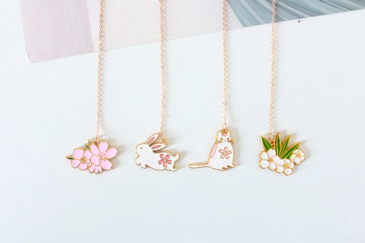 Cat Rabbit White Pink Cherry Blossom Metal Pendant Chain Bookmarks For Books