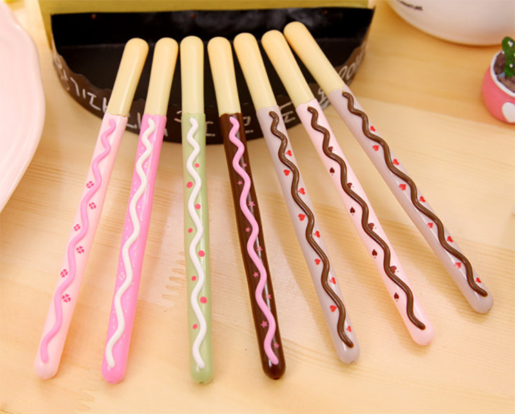 Very cute ballpoint gel pens in novelty design of chocolate biscuit sticks.