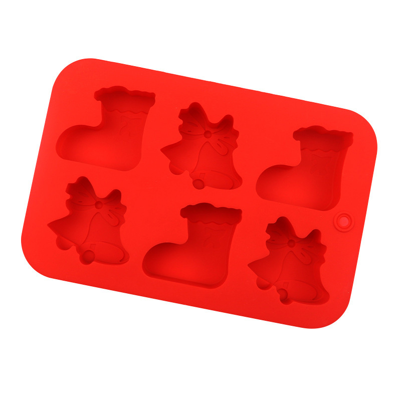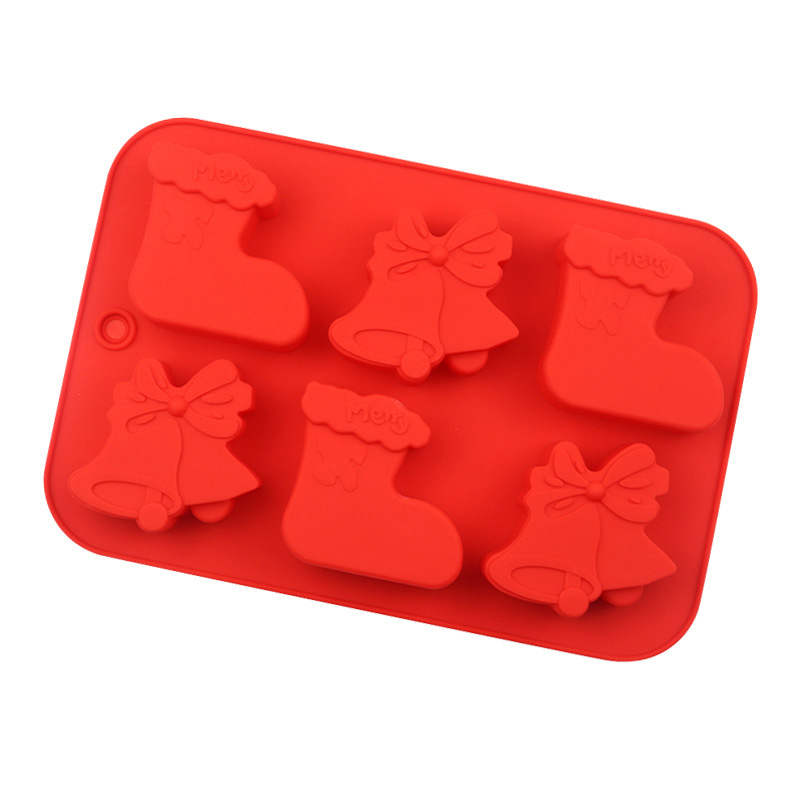 Christmas Stockings and Bells (Red): 6 x cavity. the mould measures approximately 25cm x 17cm, and each cavity is about 7cm in length, 6.5cm in width and 2.5cm in depth.