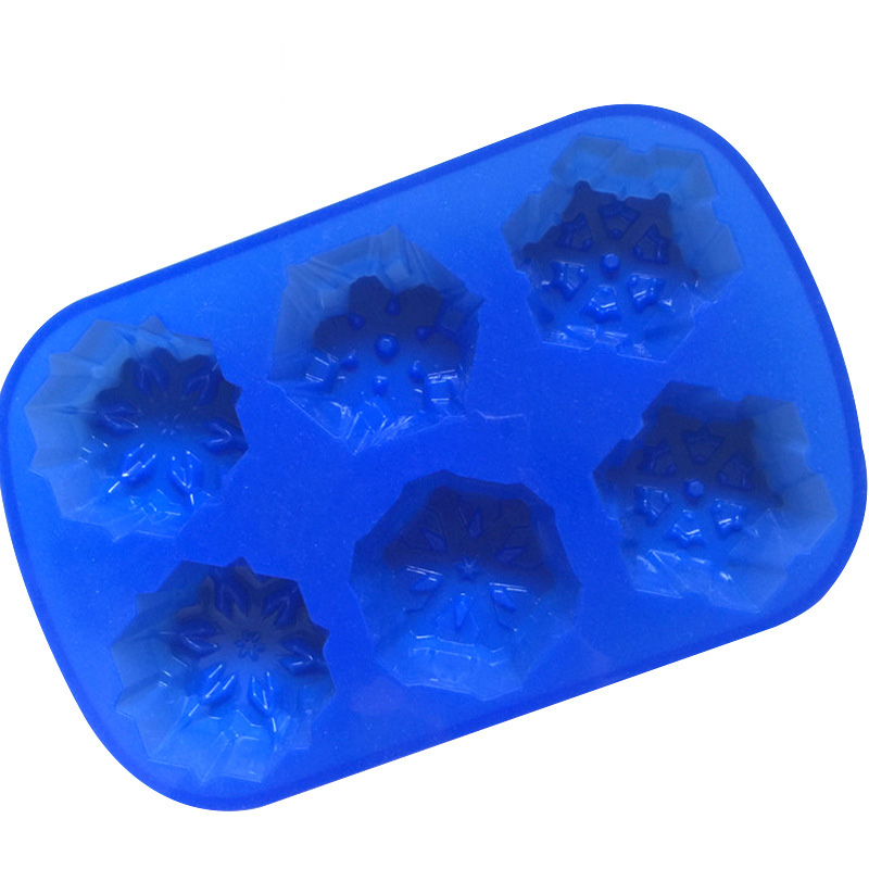 Snowflakes (Blue): 6 x cavity. the mould measures approximately 28cm x 18cm, and each snowflake cavity is about 7cm in diameter and 3.5cm in depth.
