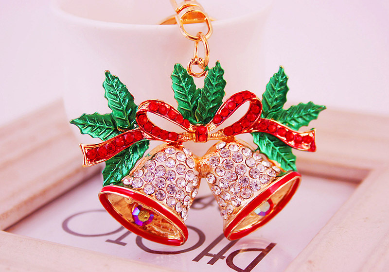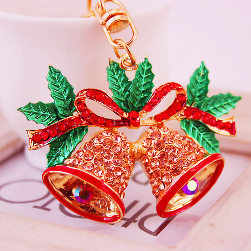 Details:Christmas Jingle Bells Crystal Diamante Bag Charms Handbag Keyrings Pendant