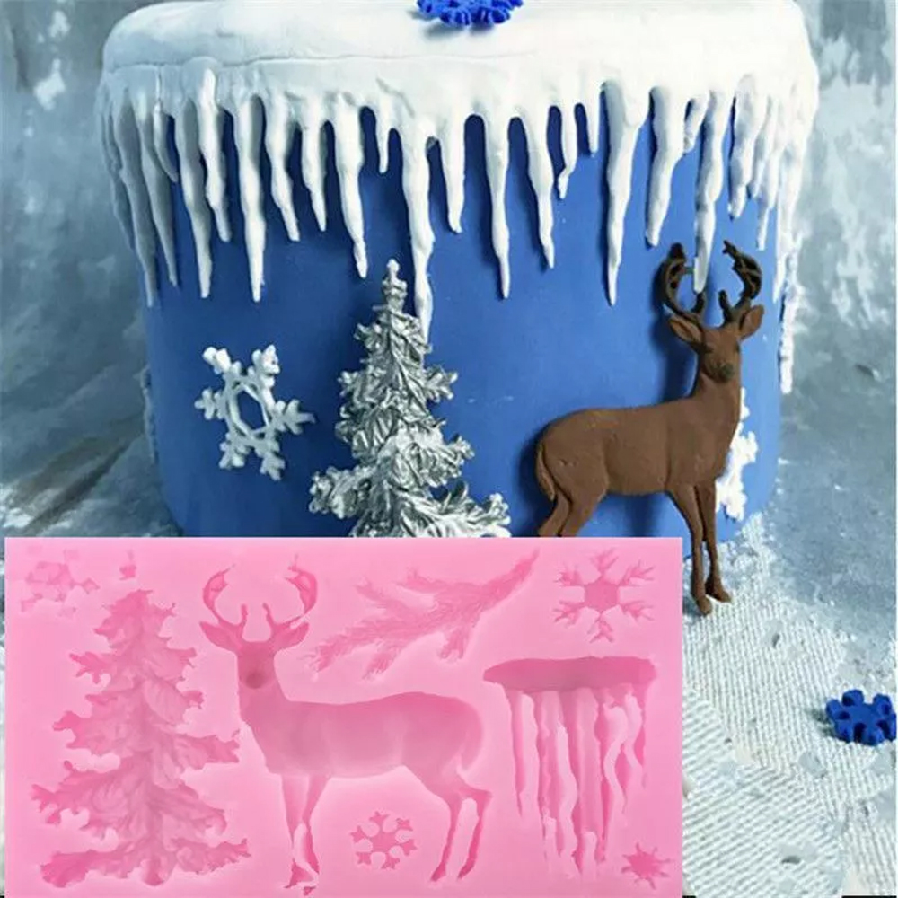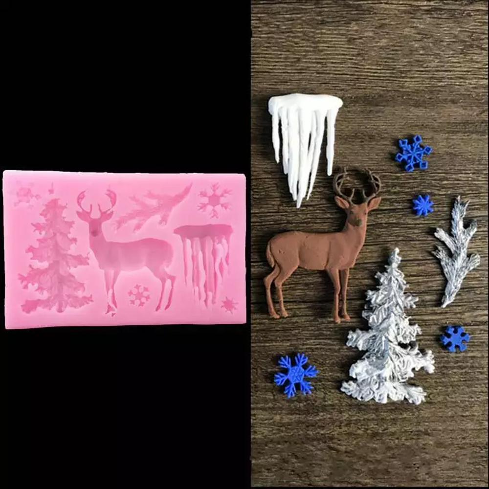 Christmas Tree Deer Snow Sugarcraft Mould Chocolate Baking Mold Cake Topper