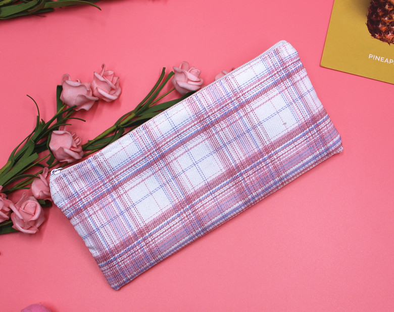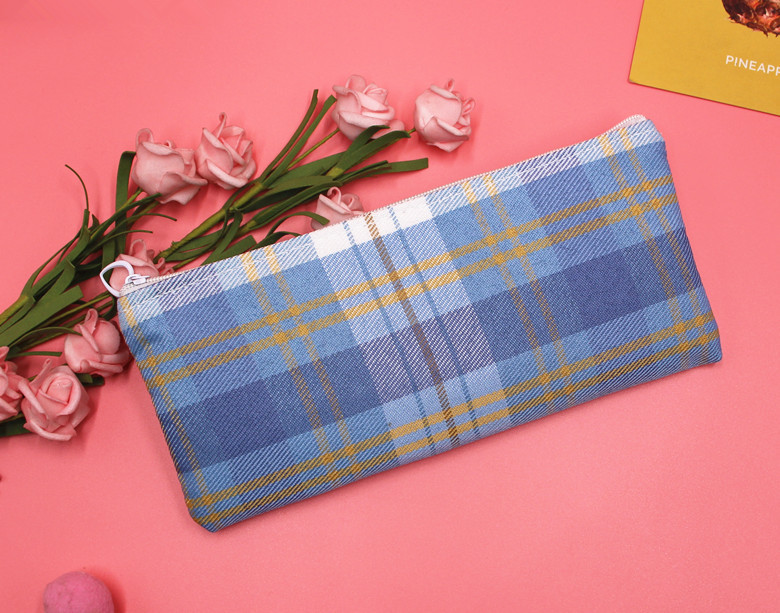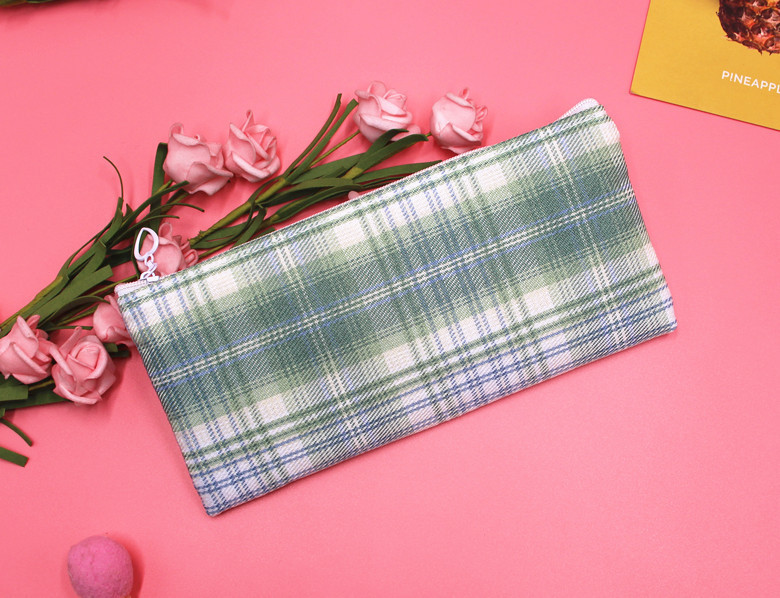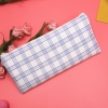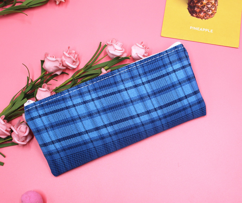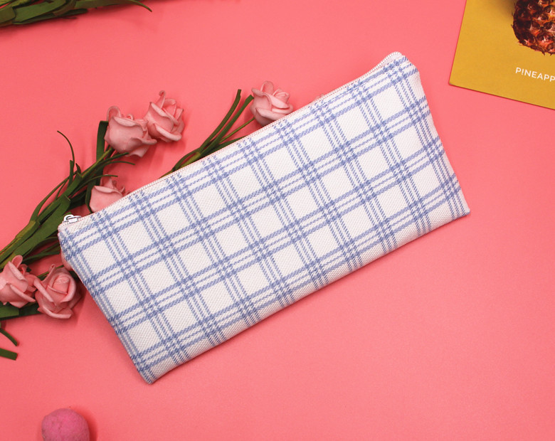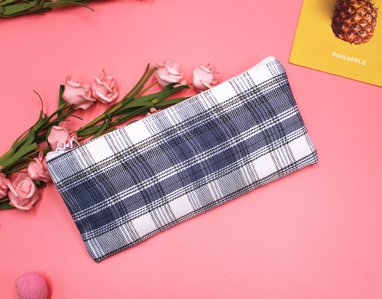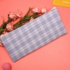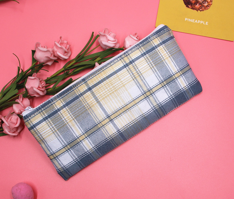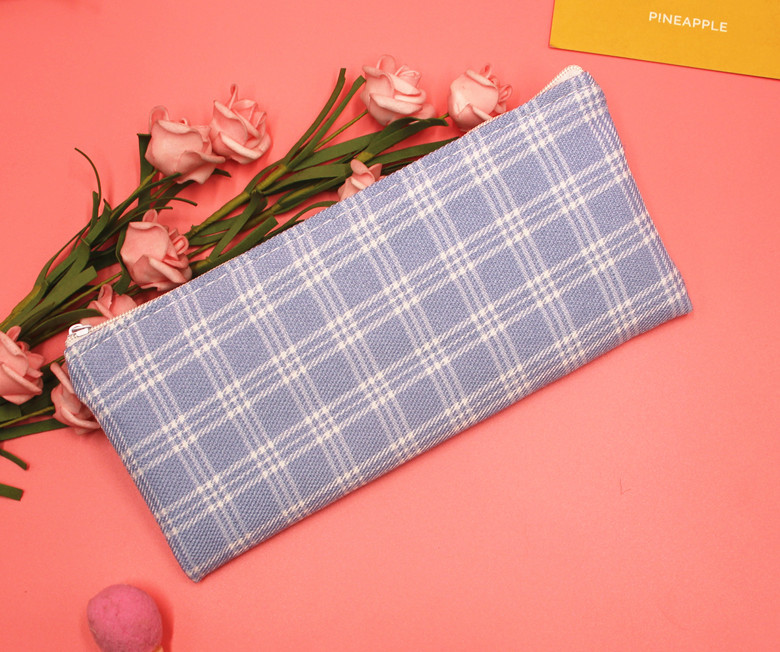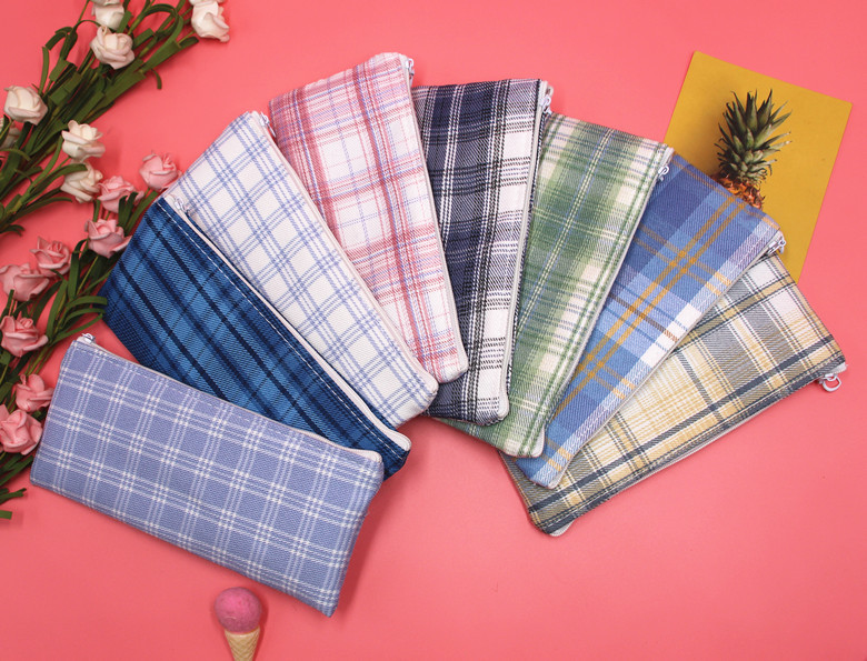 Classic Grid Pattern Canvas Fabric Pencil Cases Cosmetic Makeup Bags Pen Pouches