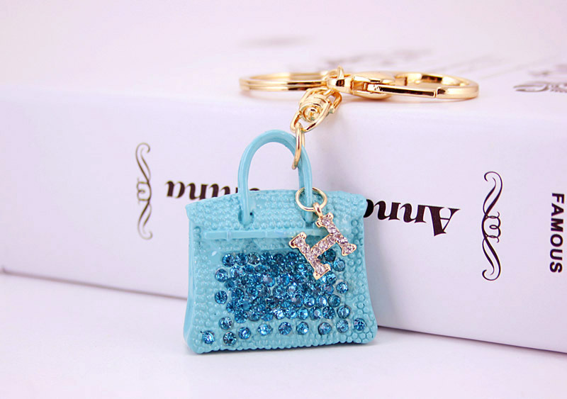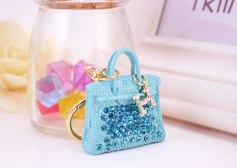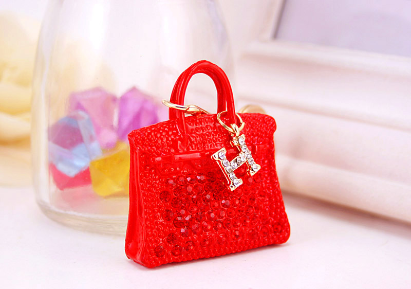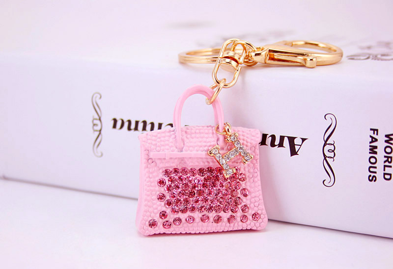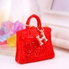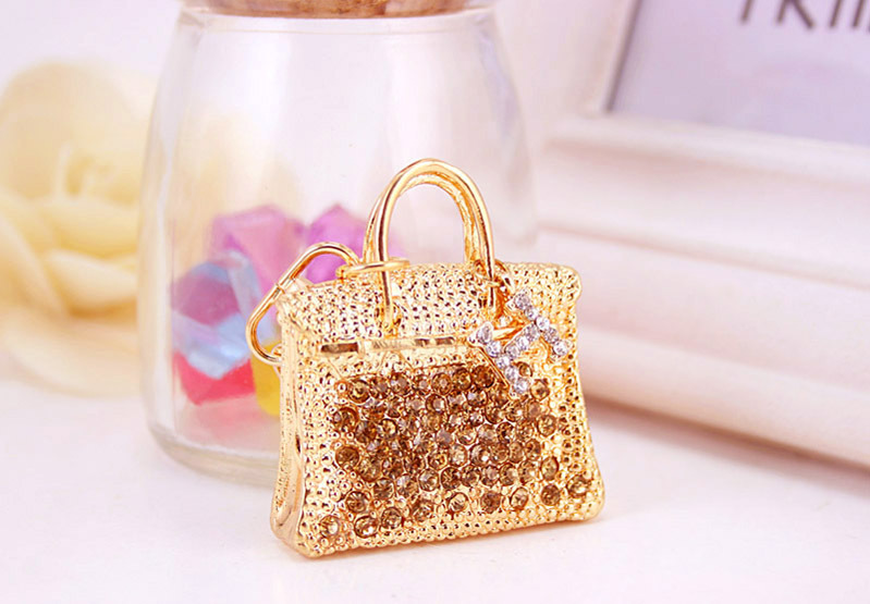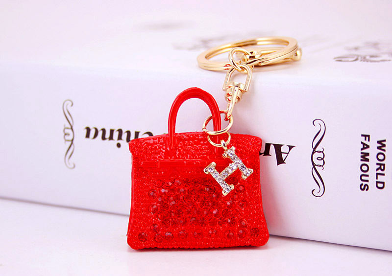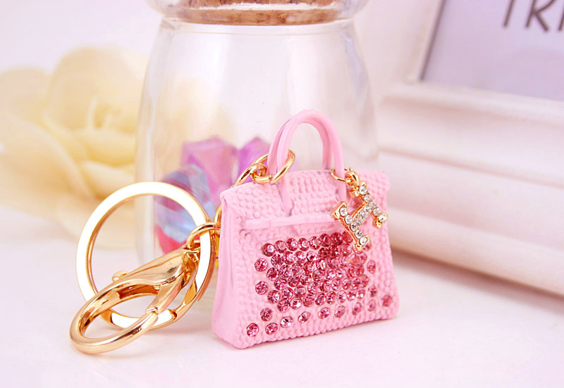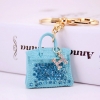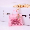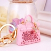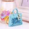Classic handbag shaped bag charm with key chain, decorated with sparkling crystal diamates. Available in five colours.