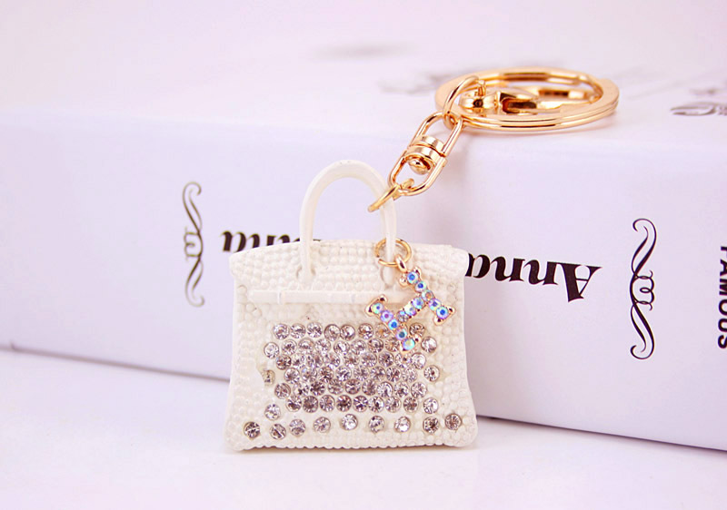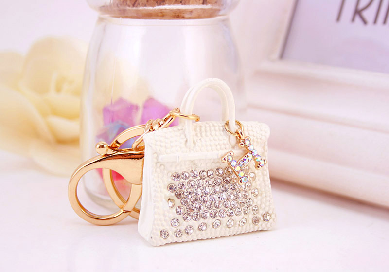Details:Classic Handbag Shaped Crystal Diamante Rhinestone Pearls Bag Charms Handbag Keyrings Pendant