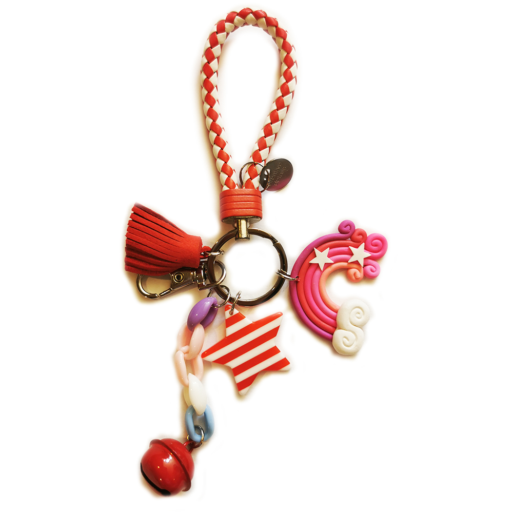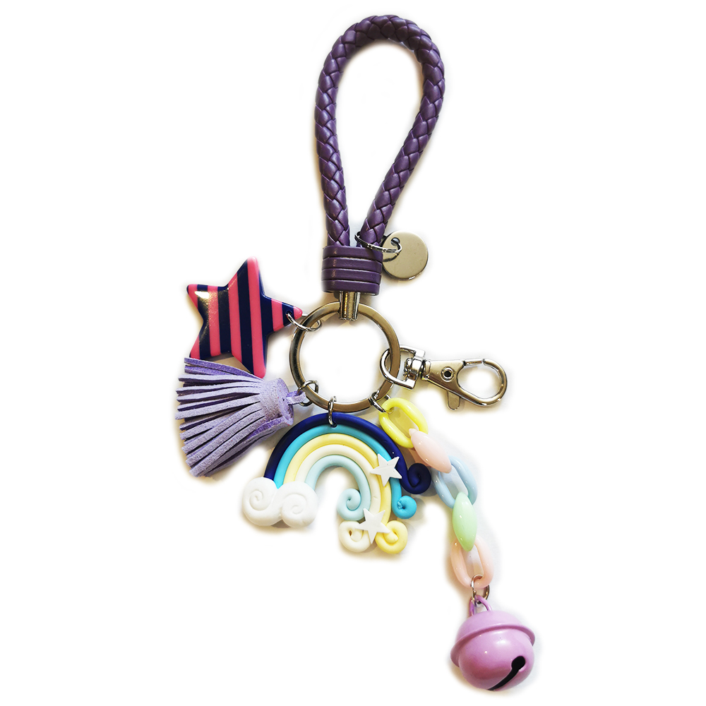 A very unique bag charm with a bunch of rainbow / lollipop, candy sweet and a bell