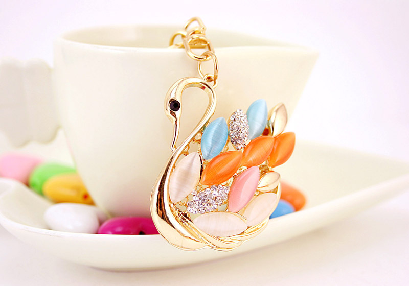 Colourful Swan Crystal Diamante Rhinestone Bag Charms Handbag Keyrings Pendant Key Chain