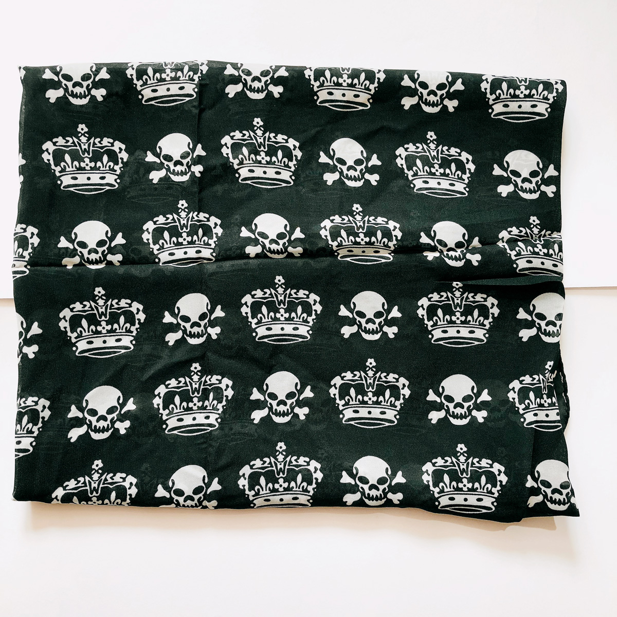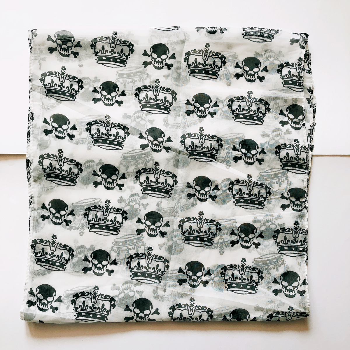 White Scarf With Black Skulls And Crowns