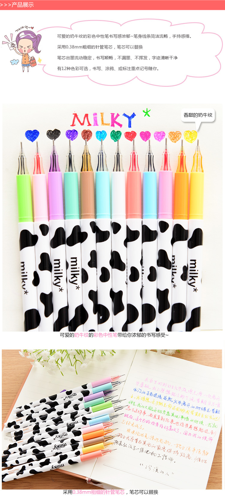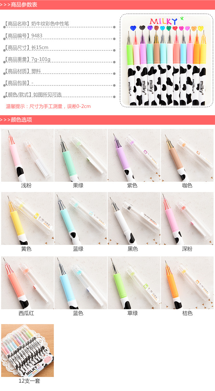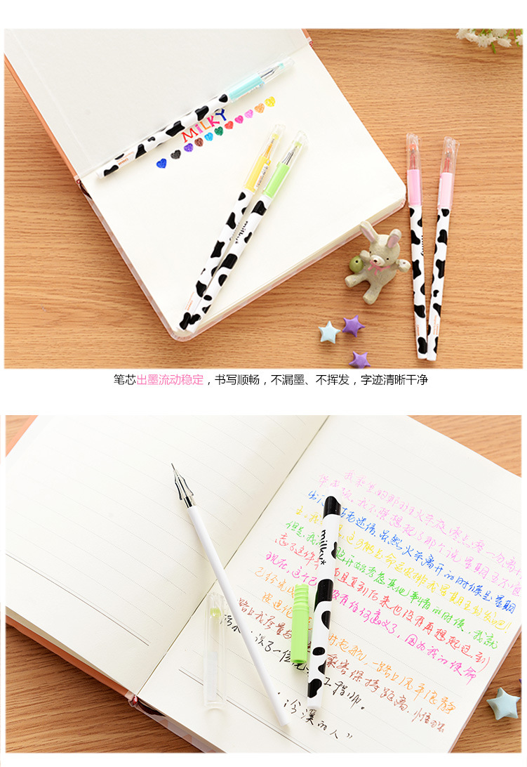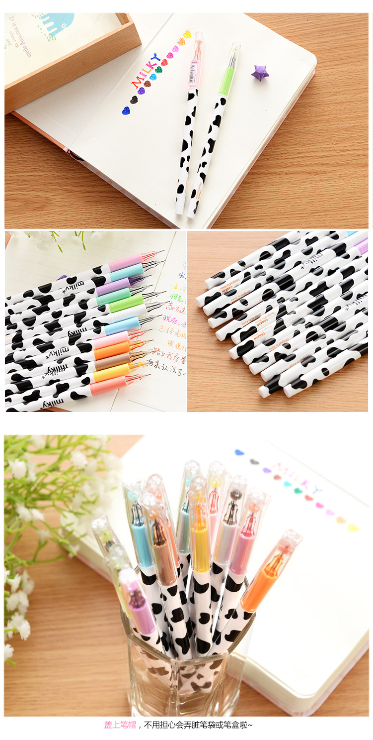 Cute Black White Milky Cow Skin Patterned Color Ink Ballpoint Gel Pens Party Gift Bag Fillers