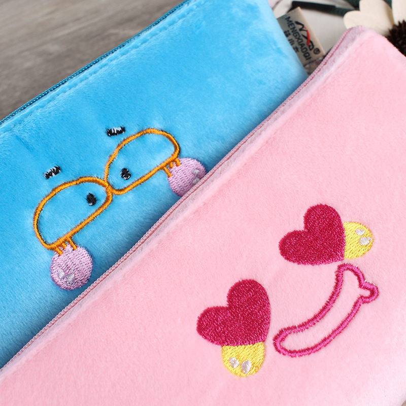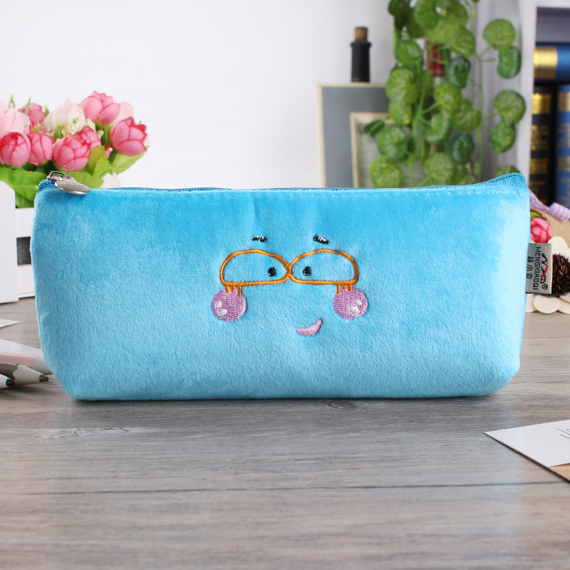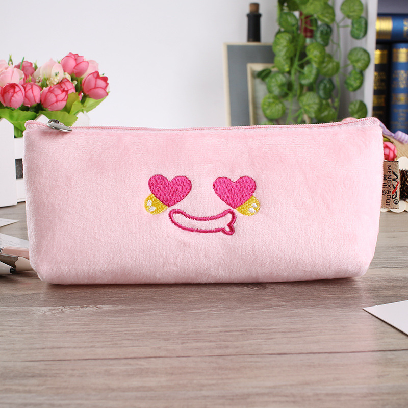Cute Emoji Face Soft Suede Pencil Cases Cosmetics Make Up Bags Pen Pouches