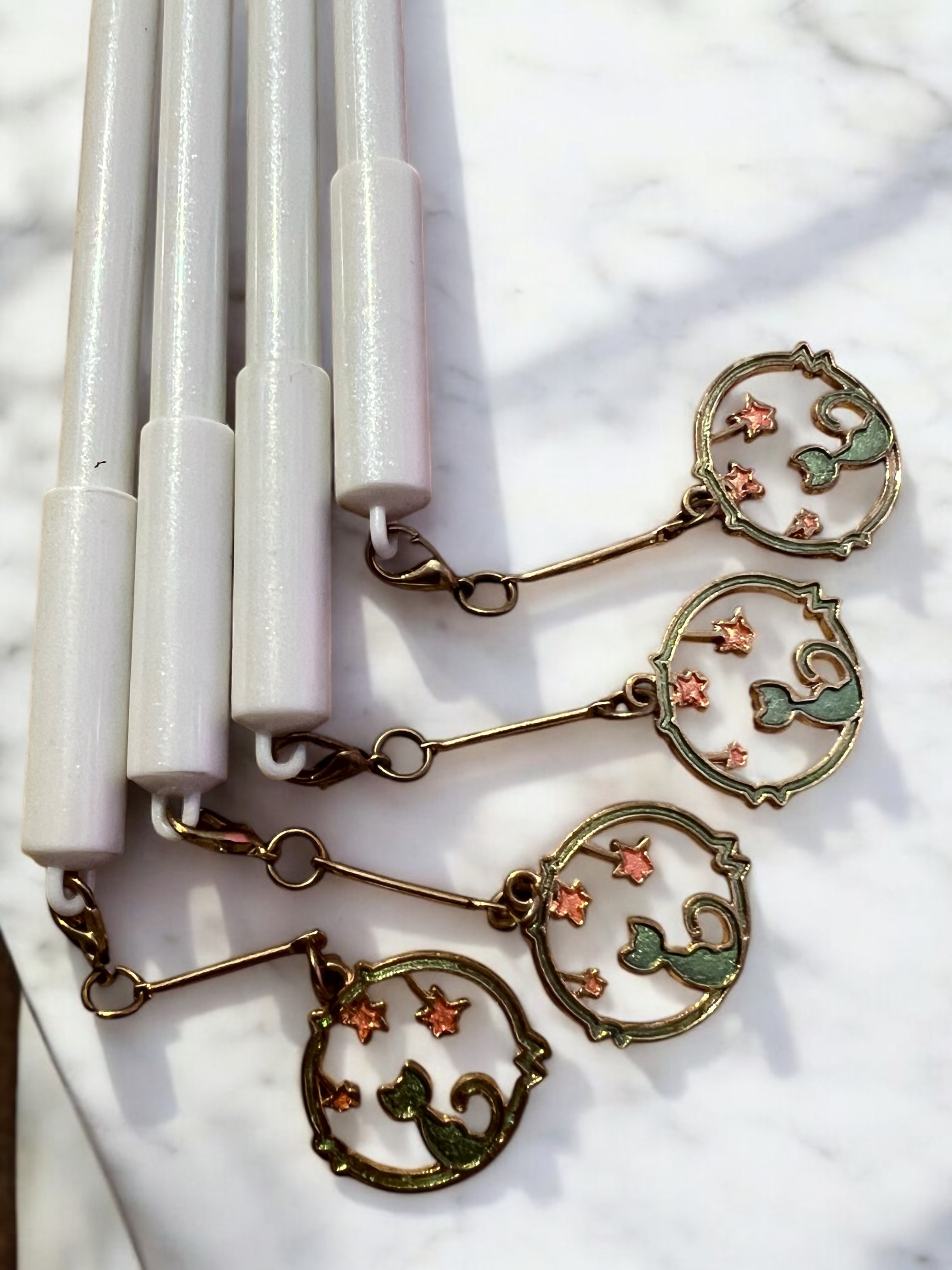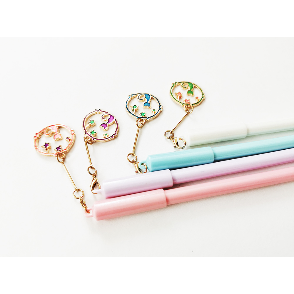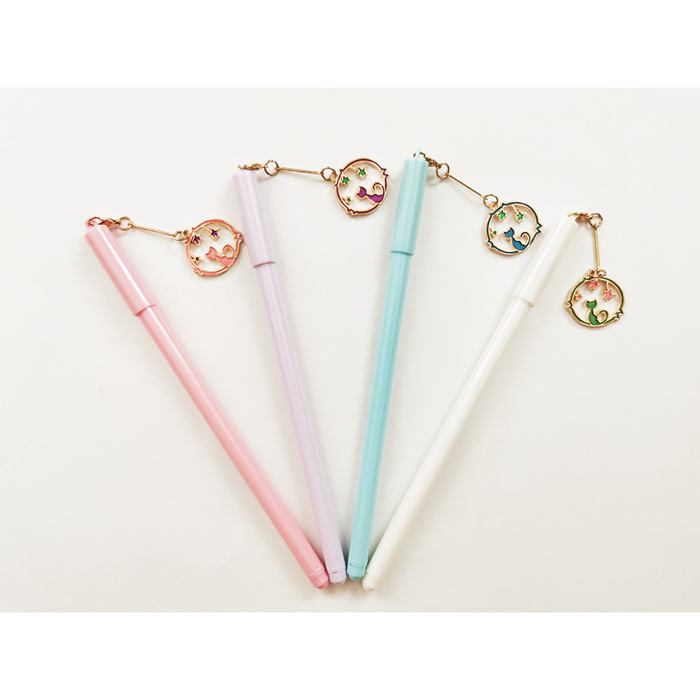 Very cute gel pens with metal pendant in designs of a little kitten cat sitting under the stars