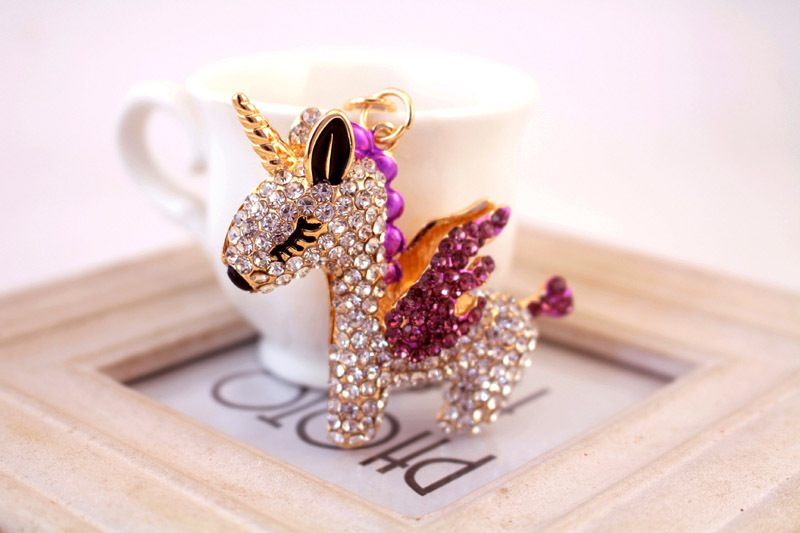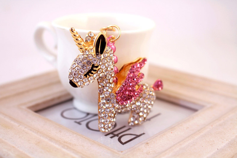 Details:Cute Unicorn Crystal Diamante Bag Charms Handbag Women Keyrings Pendant