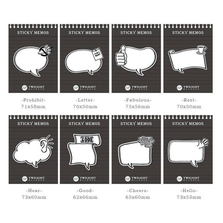 Very cute sticky notes pad in novelty designs of speech bubbles / dialogue balloons.