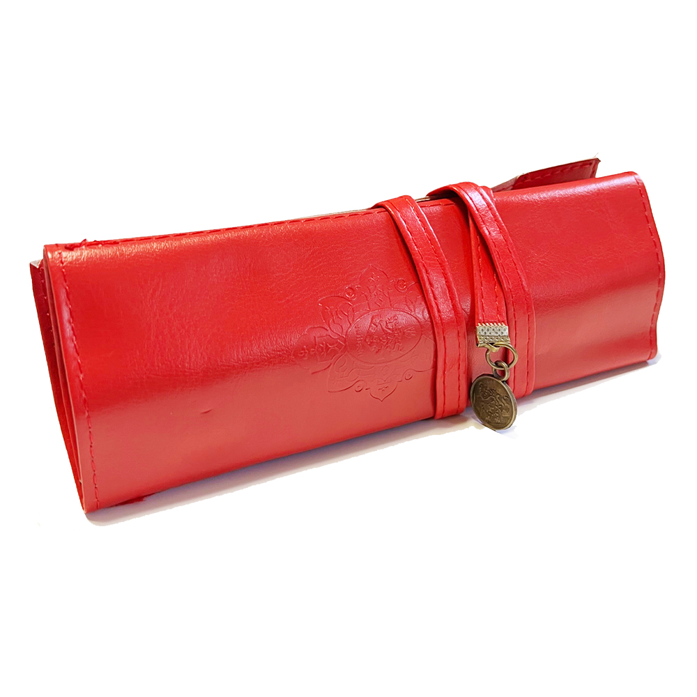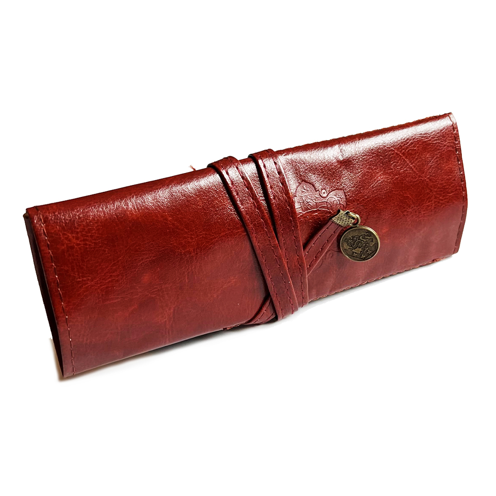 Elegant Leather Effect Roll Up Wrap Pencil Case Pen Pouch