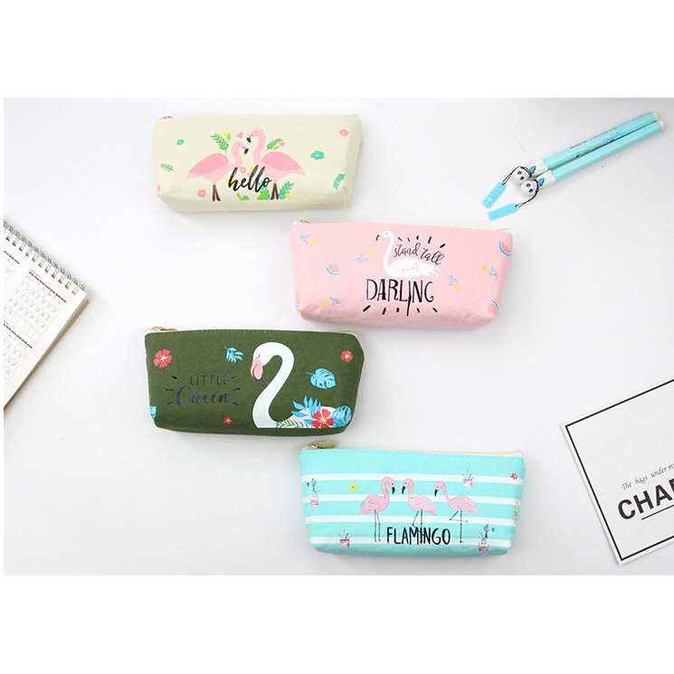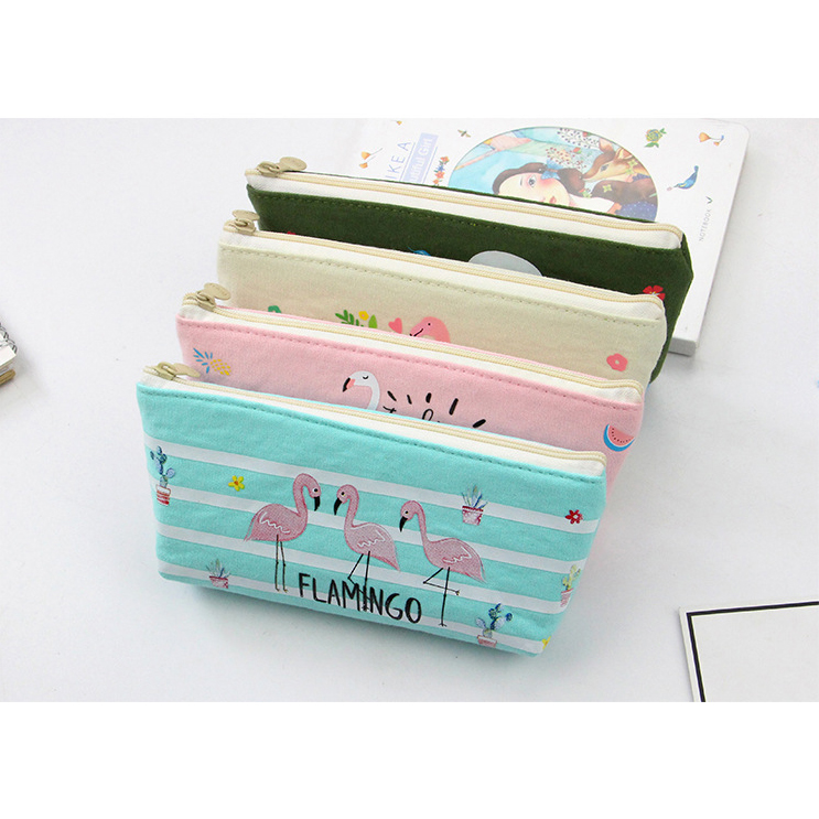 Flamingo Wild Animals Canvas Cute Pencil Cases Cosmetics Make Up Bags Pen Pouches