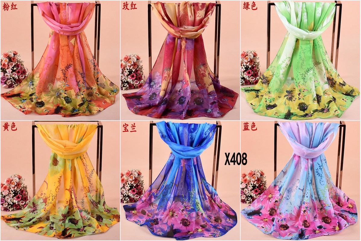 Flowers Floral Fashion Ladies Scarves Chiffon Scarf Womens Shawls Collection