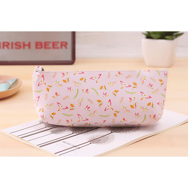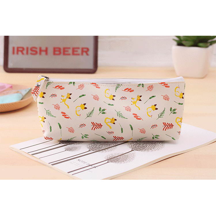 Details:Garden Animals Flowers Floral Patterned PU Leather Cute Pencil Cases Cosmetics Make Up Bags