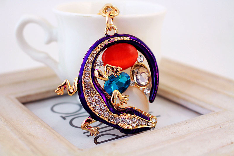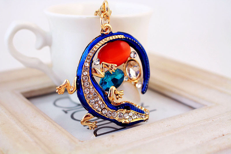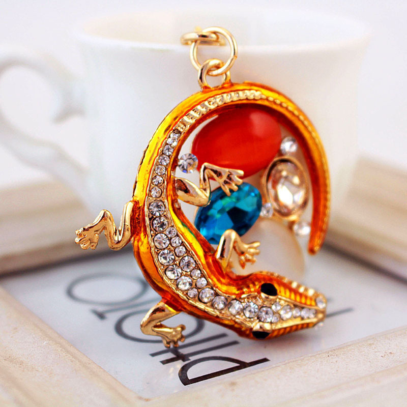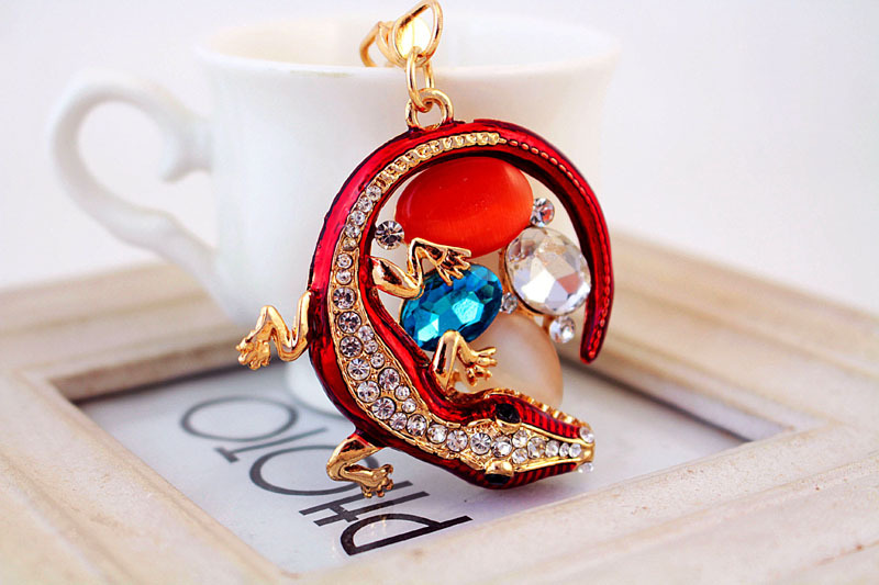 Details:Gecko Lizard Animal Crystal Diamante Bag Charms Handbag Women Keyrings Pendant