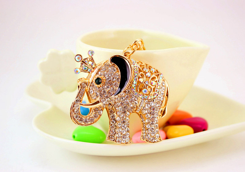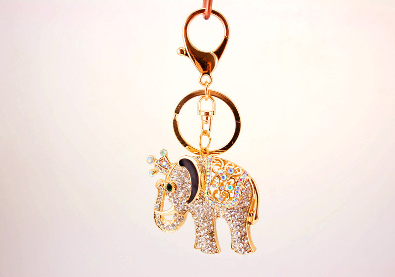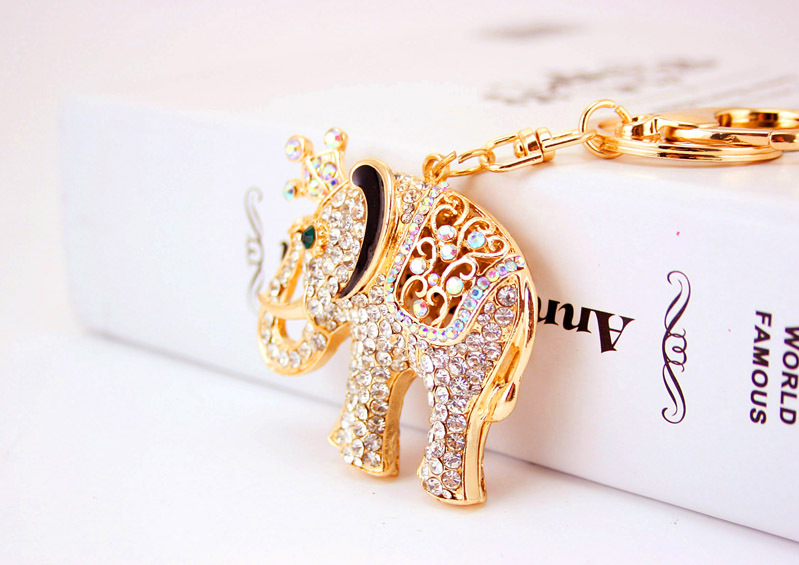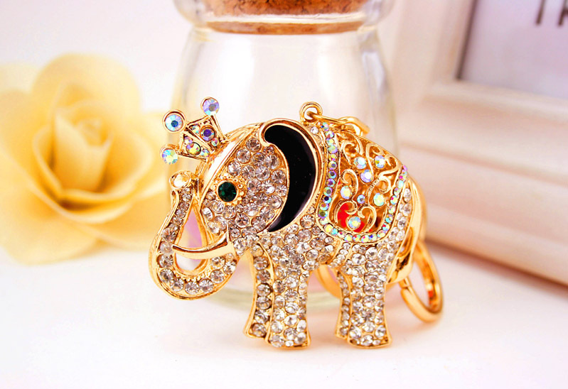 Gold Elephant Crystal Diamante Rhinestone Bag Charms Handbag Keyrings Pendant Key Chain
