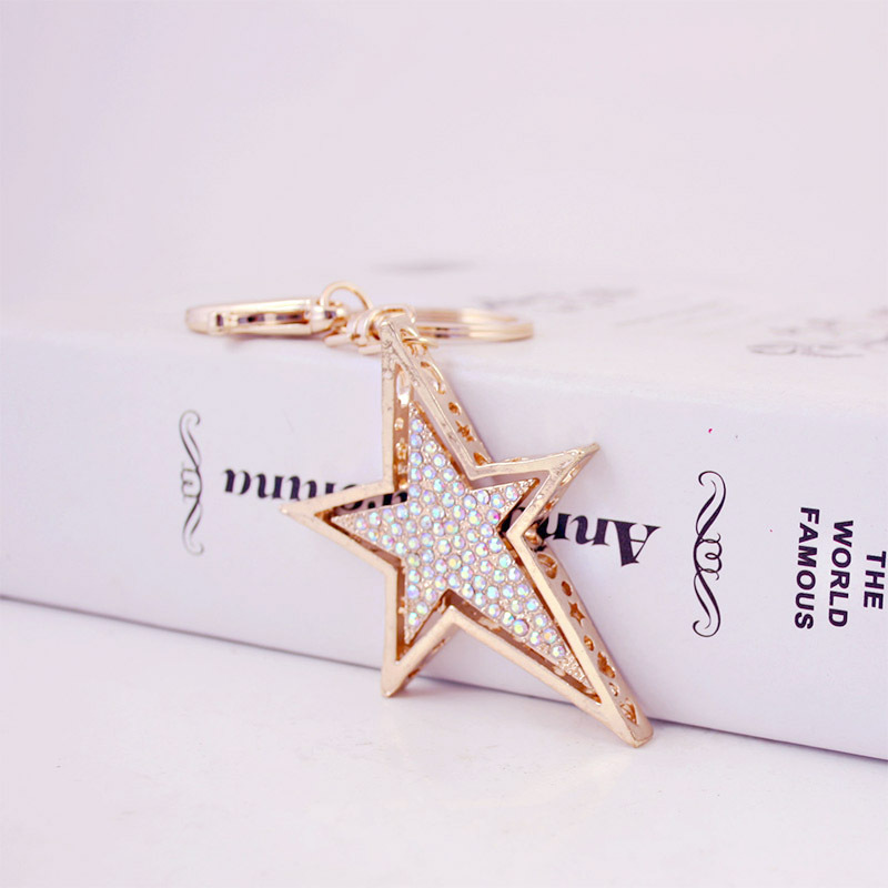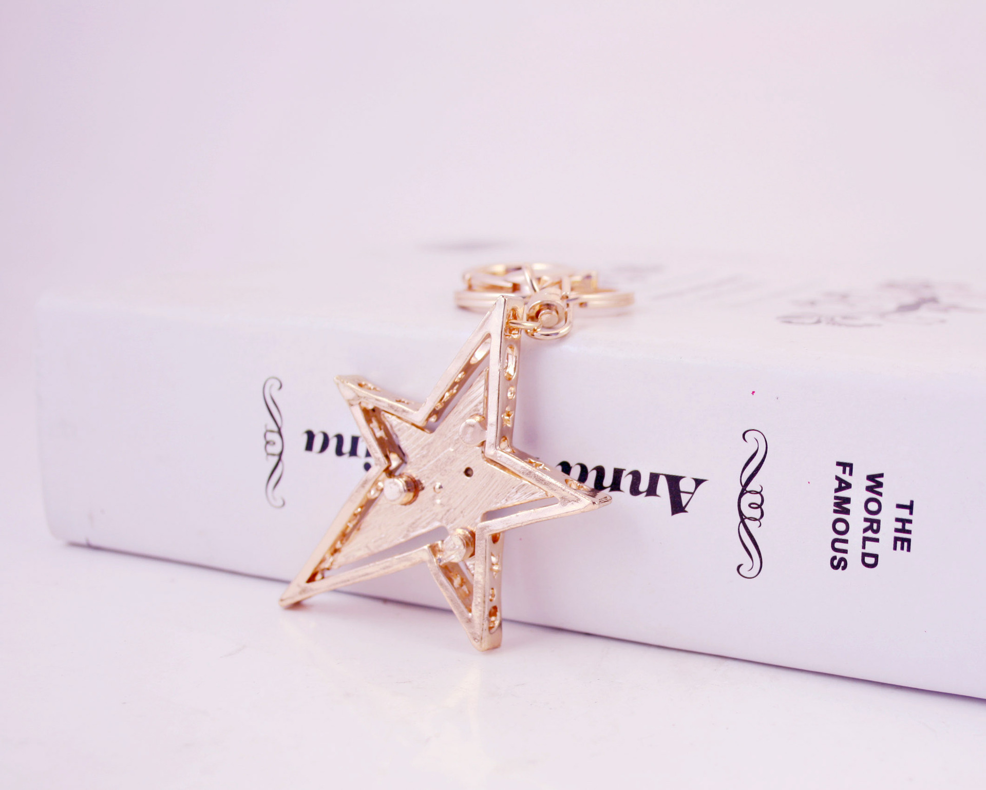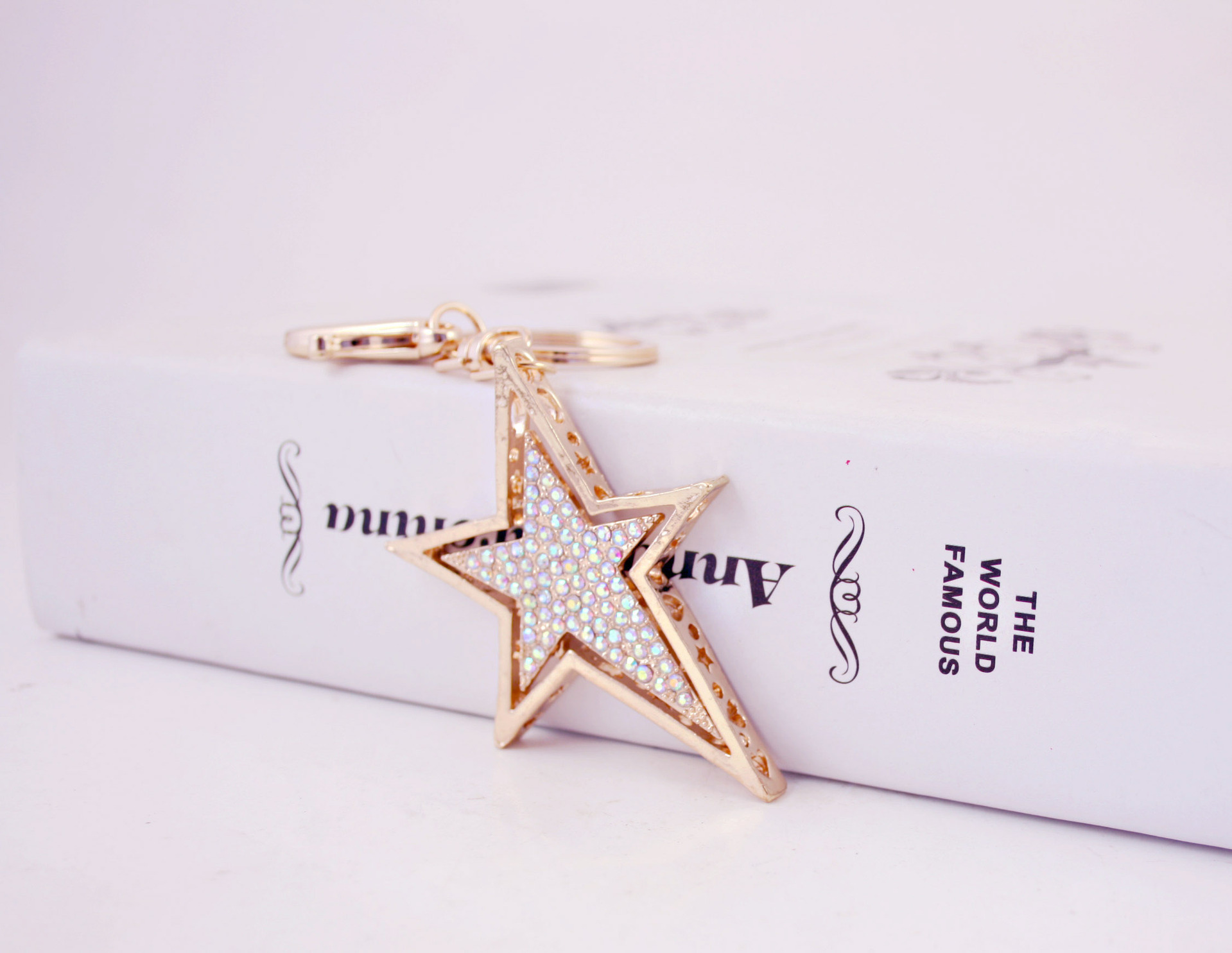 Details:Gold Star Crystal Diamante Bag Charms Handbag Keyrings Pendant Key Chain