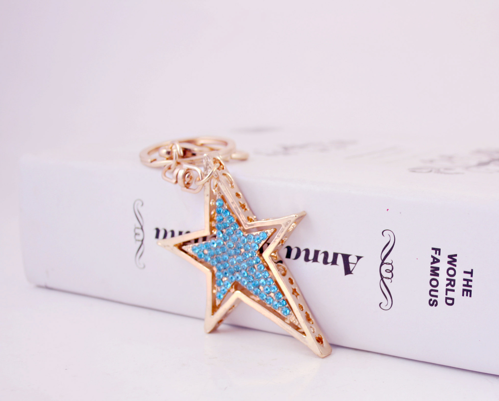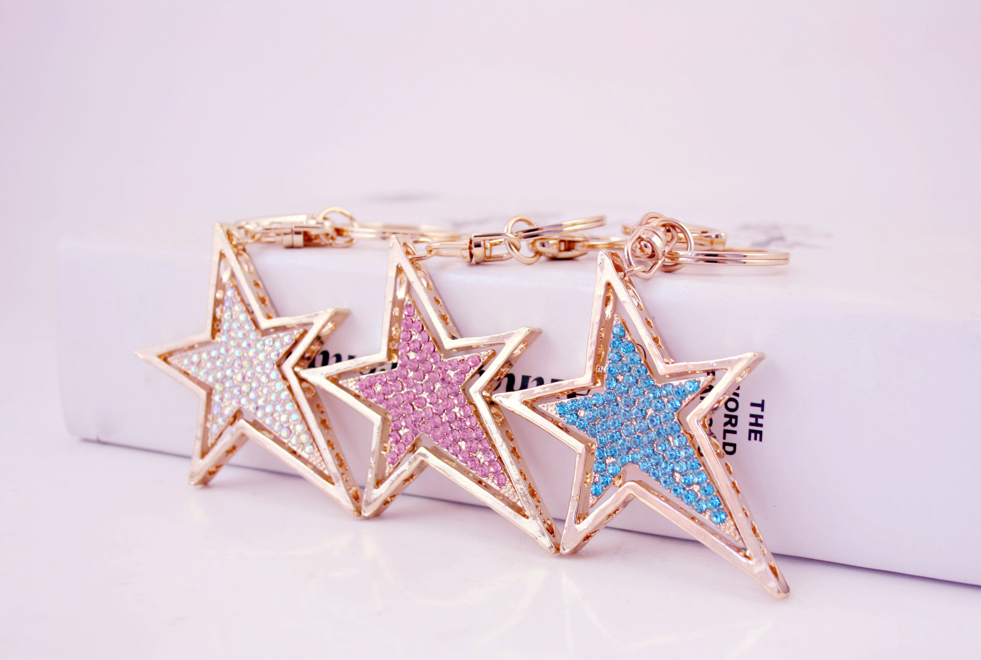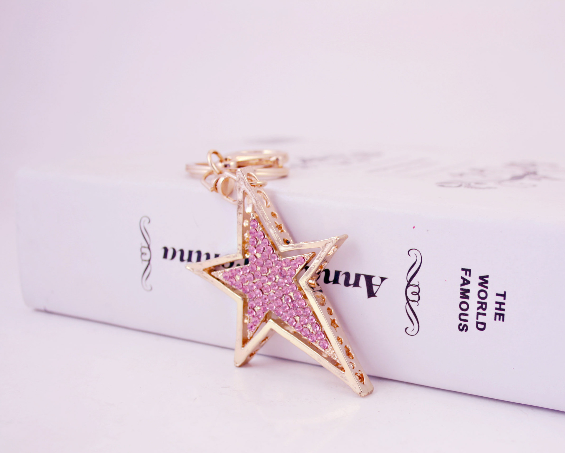 Details:Gold Star Crystal Diamante Bag Charms Handbag Keyrings Pendant Key Chain