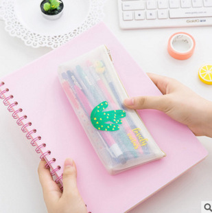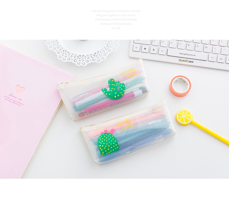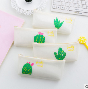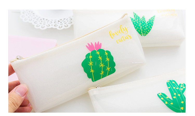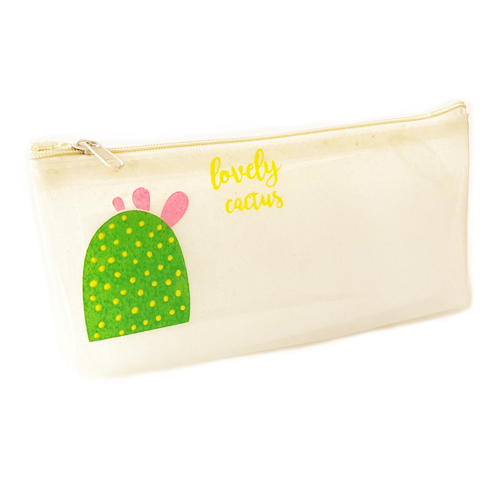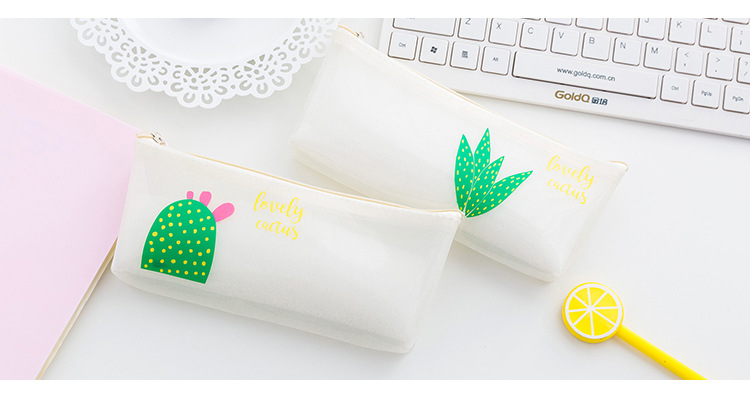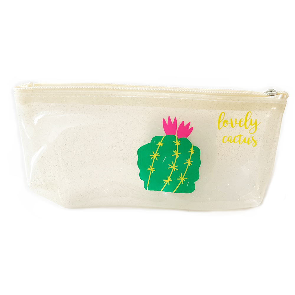 Green Cactus Pink Flowers Cute Floral White Pencil Case Makeup Bag Pen Pouch